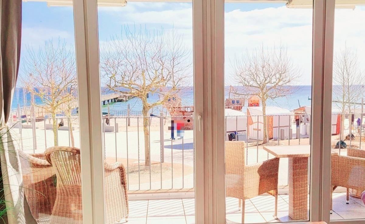 Die 60m²-Wohnung befindet sich in der 1. Etage im Haus "Schönblick" direkt am Südstrand und wurde zuletzt 2020 modernisiert.