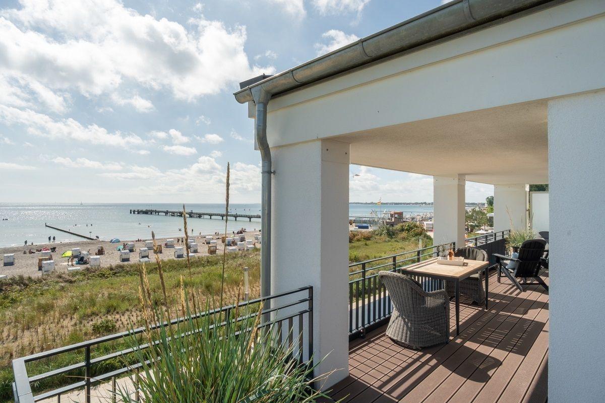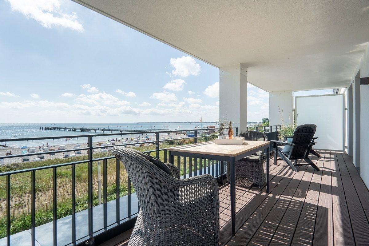 Moderne Ferienwohnung in Großenbrode mit großem Eckbalkon und direktem Meerblick für erholsamen Urlaub.