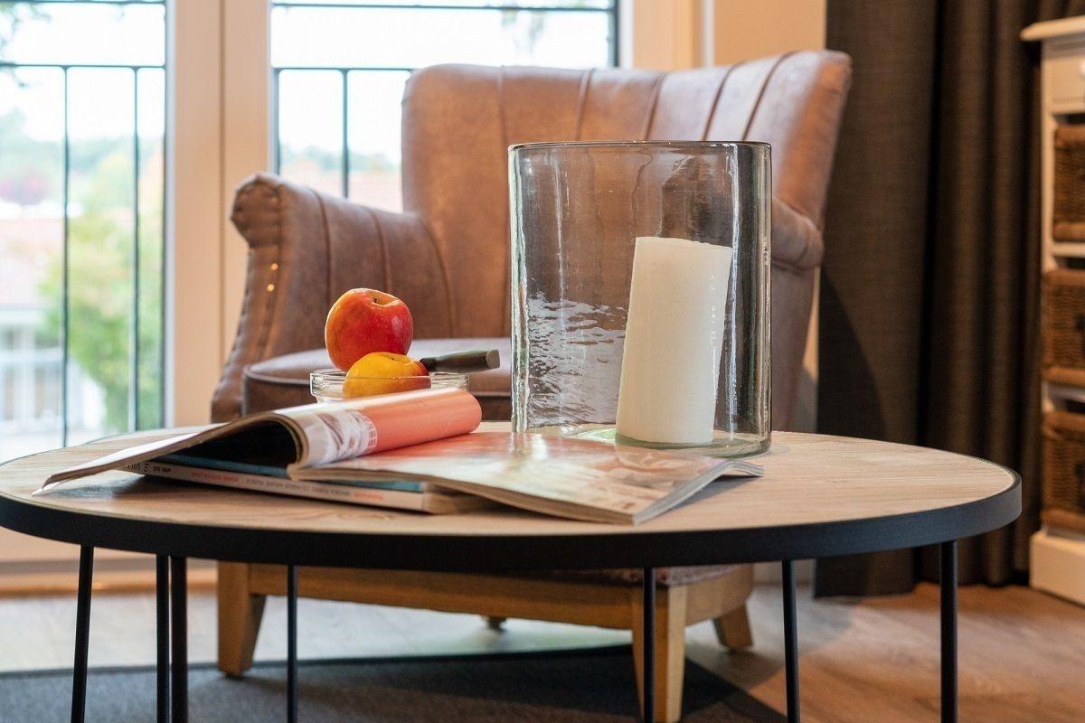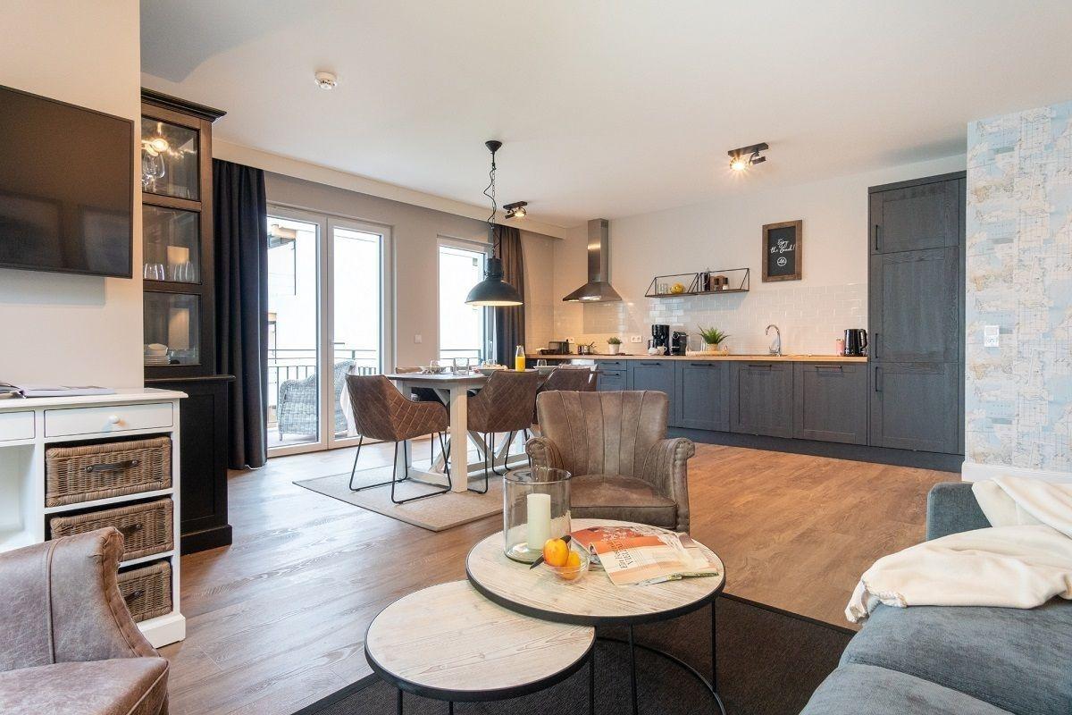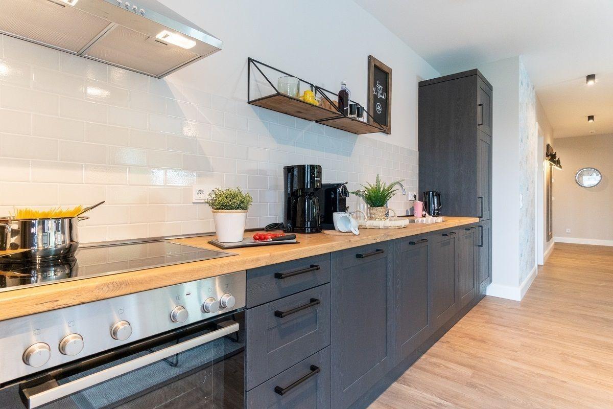 Der lichtdurchflutete Wohnbereich ist mit einer gemütlichen Sofaecke und einem Flatscreen-TV ausgestattet. Genießen Sie schon morgens beim Frühstück den herrlichen Ausblick zur See. Der offene Küchenbereich ist mit allen wichtigen Küchengeräten, Essgeschirr, sowie Besteck ausgestattet. Außerdem stehen Ihnen noch ein Backofen, ein Geschirrspüler und eine Nespressomaschine zur Verfügung.