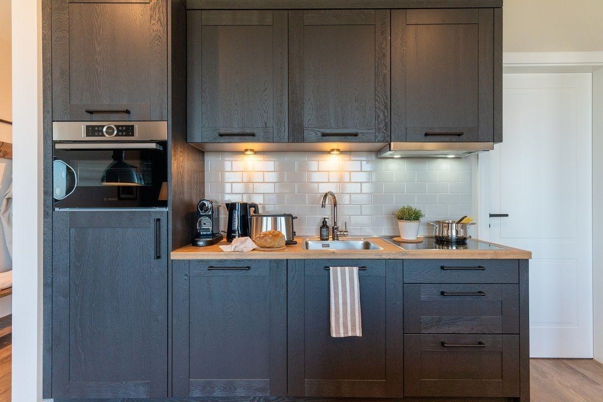 Die angrenzende offene Küche ist mit allen Annehmlichkeiten voll ausgestattet. Für Kaffeeliebhaber steht eine Nesspressomaschine zur Verfügung. Das Badezimmer ist mit einer ebenerdigen Dusche mit Glastrennwand ausgestattet. Das besondere Highlight ist die wohnungseigene Sauna - hier lässt es sich auch an Schietwettertagen herrlich relaxen.