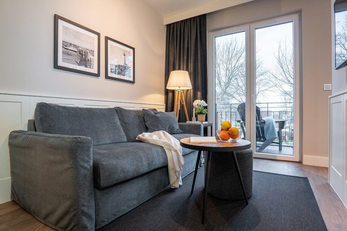 Der lichtdurchflutete Wohnbereich ist mit einer gemütlichen Sofaecke (Schlafsofa: ca. 140*200 cm) und einem Flatscreen-TV ausgestattet. Vom Wohnbereich obtisch abgeteilt befindet sich das Schlafzimmer mit einem luxurösen Doppelbett. Der offene Küchenbereich ist mit allen wichtigen Küchengeräten, Essgeschirr, sowie Besteck ausgestattet. Außerdem stehen Ihnen noch ein Backofen, ein Geschirrspüler und eine Nespressomaschine zur Verfügung.