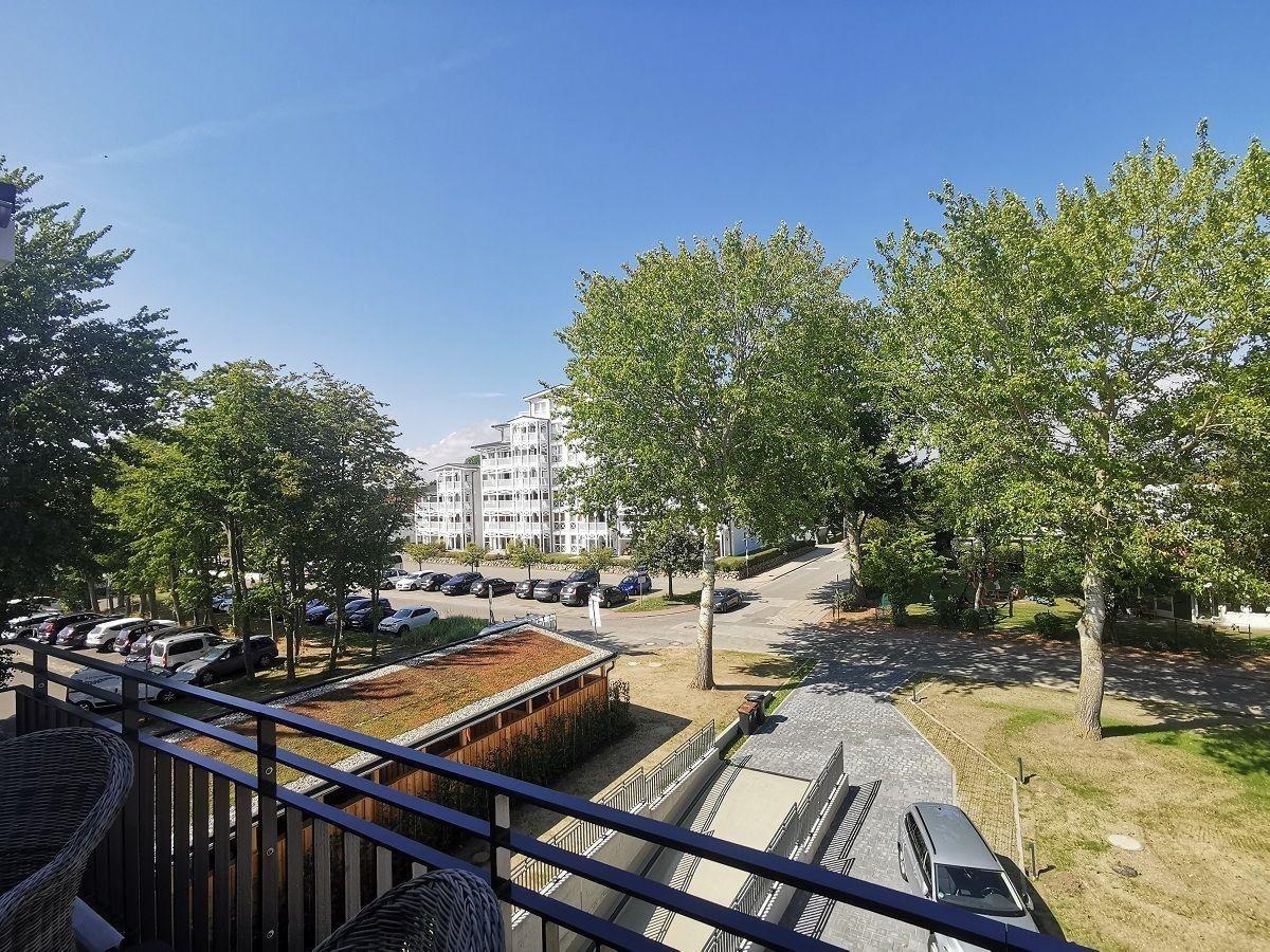 Der möblierte Balkon der Wohnung lädt zum verweilen und entspannen ein. Zur Wohnung gehört ein eigener Tiefgaragenstellplatz (Nr. 13) im Haus.
