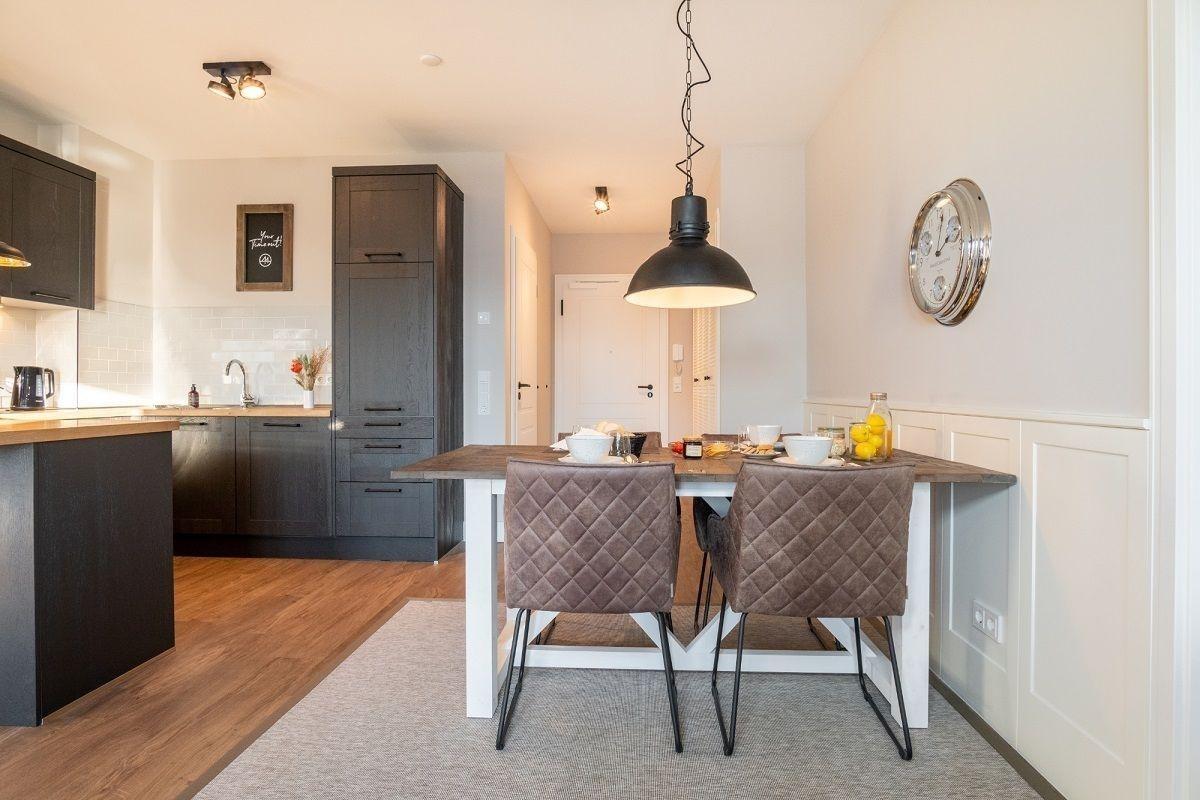 Der lichtdurchflutete Wohnbereich ist mit einer gemütlichen Sofaecke und einem Flatscreen-TV ausgestattet. Genießen Sie schon morgens beim Frühstück den herrlichen Ausblick zur See. Der offene Küchenbereich ist mit allen wichtigen Küchengeräten, Essgeschirr, sowie Besteck ausgestattet. Außerdem stehen Ihnen noch ein Backofen, ein Geschirrspüler und eine Nespressomaschine zur Verfügung.