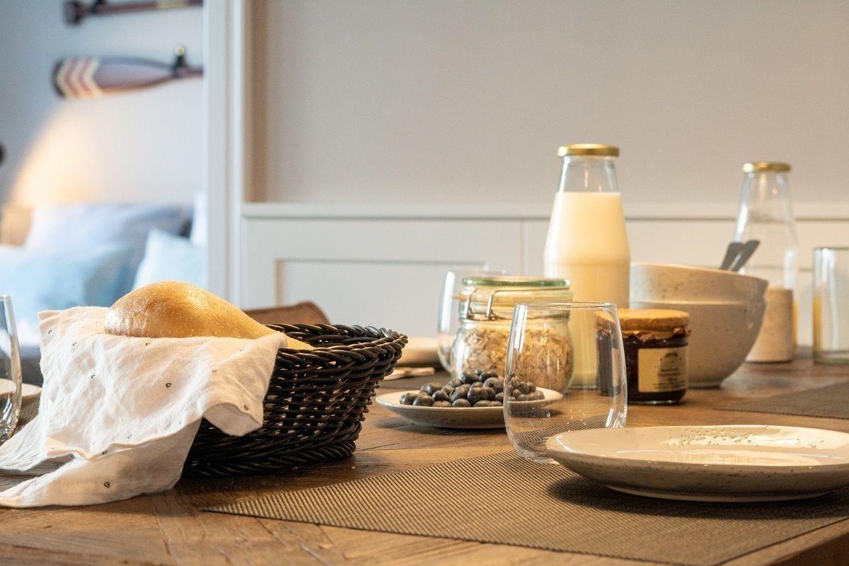 Der lichtdurchflutete Wohnbereich ist mit einer gemütlichen Sofaecke und einem Flatscreen-TV ausgestattet. Genießen Sie schon morgens beim Frühstück den herrlichen Ausblick zur See. Der offene Küchenbereich ist mit allen wichtigen Küchengeräten, Essgeschirr, sowie Besteck ausgestattet. Außerdem stehen Ihnen noch ein Backofen, ein Geschirrspüler und eine Nespressomaschine zur Verfügung.