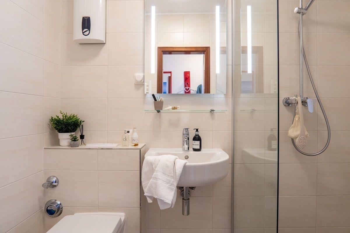 Die gemütliche 47m²-Wohnung in der fünften Etage verfügt über einen großzügigen Wohnbereich mit einem gemütlichen Schlafsofa (für Kinder geeignet), Flatscreen-TV und einer Essecke für vier Personen. Der offene Küchenbereich ist, für den Urlaubsbedarf, voll ausgestattet. Eine Kaffeemaschine gehört ebenso dazu, wie der Wasserkocher und ein Toaster. Geschirr und Besteck sind ausreichend vorhanden. Das Appartement verfügt über ein separates Schlafzimmer - ausgestattet mit zwei Einzelbetten zusammengestellt zu einem Doppelbett.