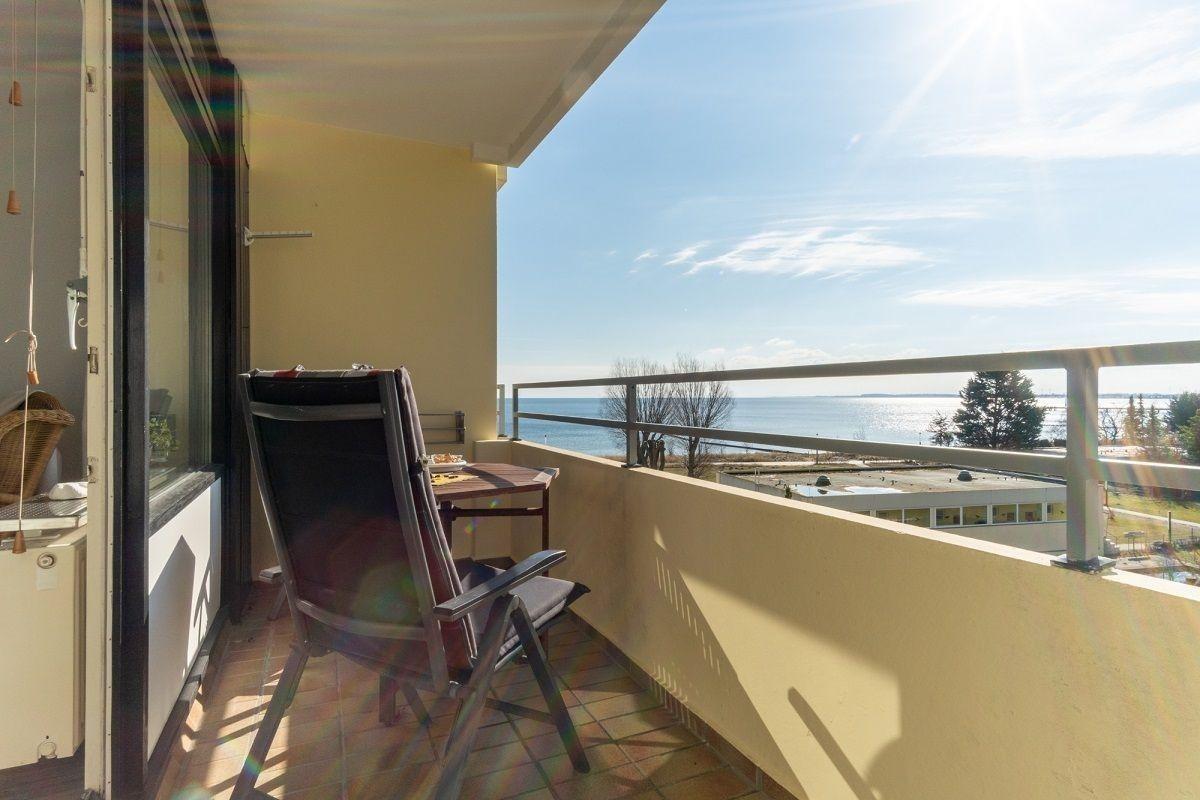 Vom Wohnbereich aus gelangen Sie auf den sonnigen Westbalkon mit herrlichem seitlichem Meerblick.