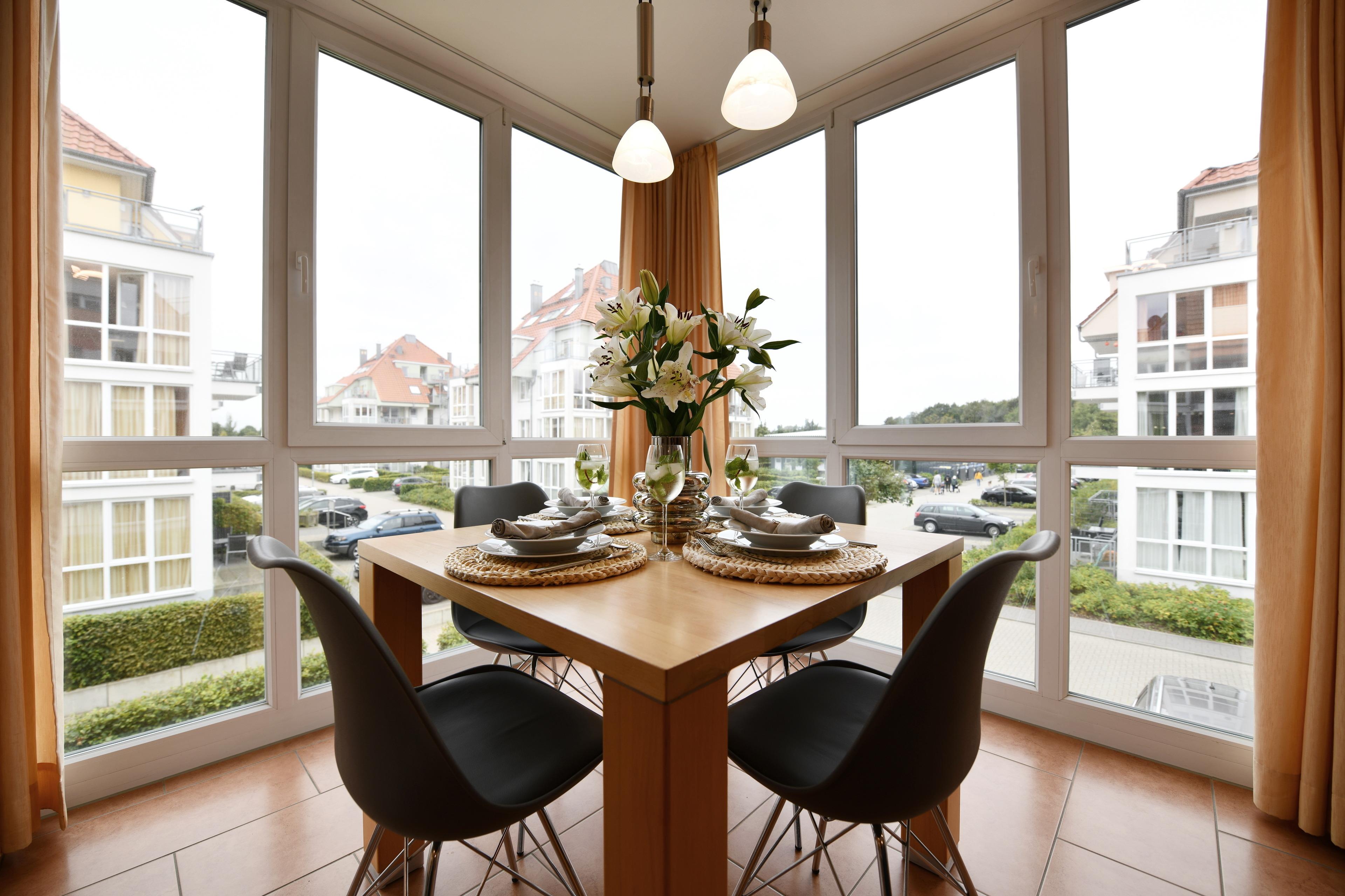 Das Nichtraucher-Appartement verfügt über einen mit Glasfronten versehenen und liebevoll eingerichteten Wohn-/Essbereich mit integrierter voll ausgestatteter Küche. Für angenehme Temperaturen sorgt eine Fußbodenheizung und eine 3fach-Verglasung. Gerne können Sie auch den Kamin im Wohnzimmer nutzen, um an kälteren Tagen eine wohlige Wärme herzustellen.