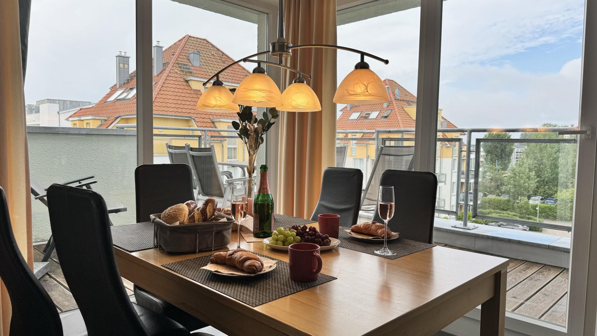 Entspannen Sie im Penthouse Möwennest 13 mit Sauna, Kamin und zwei Balkonen nahe dem Strand in Großenbrode.