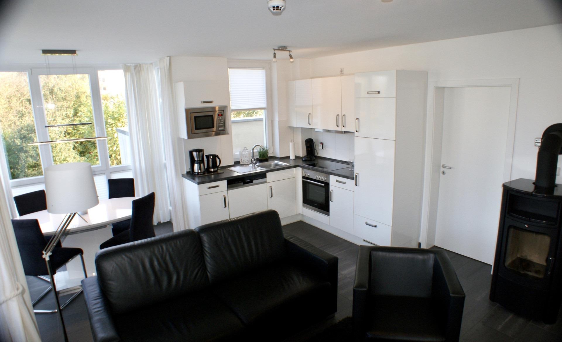 In der gut ausgestatteten Küche finden Sie alles, was ein Hobbykoch benötigt. Neben einer Filtermaschine steht zusätzlich eine Kaffeepadmaschine zur Verfügung.