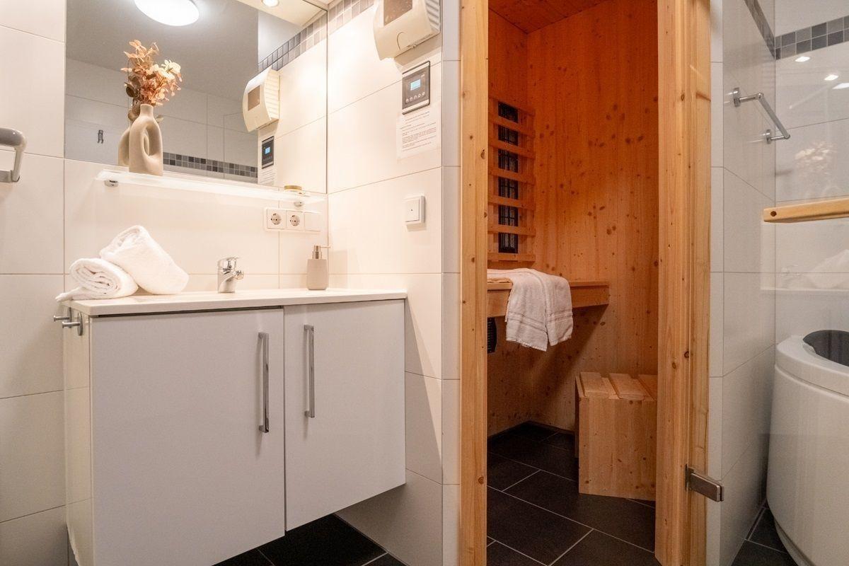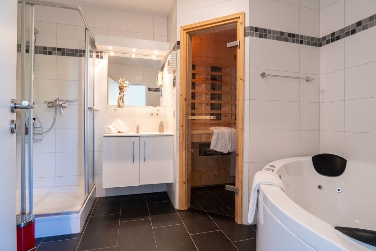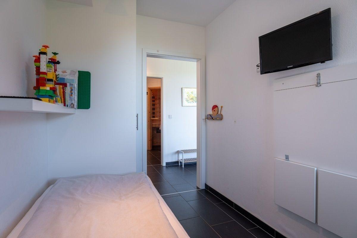 Die gemütliche Wohnung verfügt über einen lichtdurchfluteten Wohnbereich - aufgeteilt in eine Sofalandschaft und Kaminofen, Essecke am Fenster und einer Küchenzeile. Vom Wohnbereich aus gelangt man auf den Nordbalkon - man kann die Ostsee schon riechen. Das große Schlafzimmer ist mit einem Boxspringbett, Kleiderschrank, sowie einem eigenen TV ausgestattet. Im zweiten Schlafzimmer (Kinderzimmer) steht ein Kojenbett zur Verfügung. Für Wellnessfans ist das Badezimmer bestens geeigent: Sauna und eine große Wellnessbadewanne gehören neben der Dusche ebenfalls zur Ausstattung.