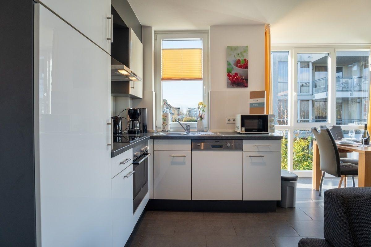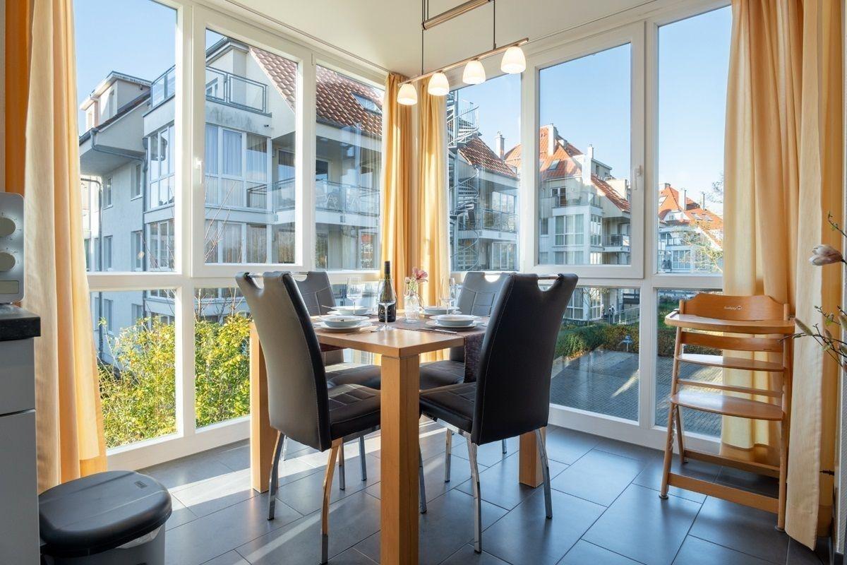 Die gemütliche Wohnung verfügt über einen lichtdurchfluteten Wohnbereich - aufgeteilt in eine TV-Ecke mit Sofa und Kaminofen, Essecke am Fenster und einer Küchenzeile. Vom Wohnbereich aus gelangt man auf den Nordbalkon - man kann die Ostsee schon riechen. Das große Schlafzimmer ist mit einem Doppelbett, Kleiderschrank, sowie einem eigenen TV ausgestattet. Im zweiten Schlafzimmer (Kinderzimmer) steht ein Etagenbett zur Verfügung. Für Wellnessfans ist das Badezimmer bestens geeignet: Sauna und eine große Wellnessbadewanne gehören neben der Dusche ebenfalls zur Ausstattung.