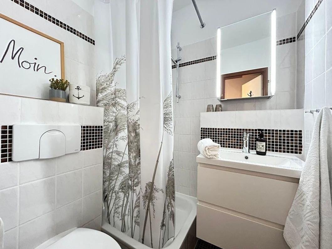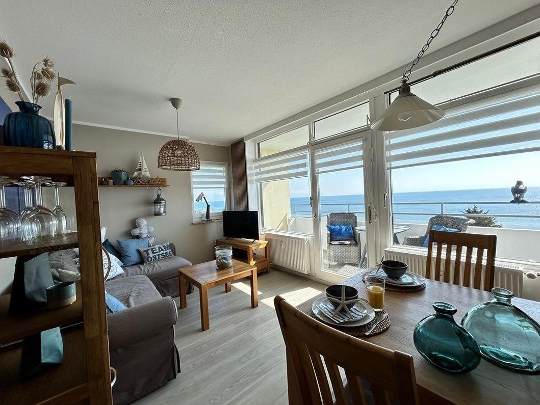 Die Wohnung befindet sich in der siebten Etage der gepflegten Appartement Anlage „Vier Jahreszeiten" und bietet einen atemberaubenden Blick aus allen Fenstern über die Ostsee.