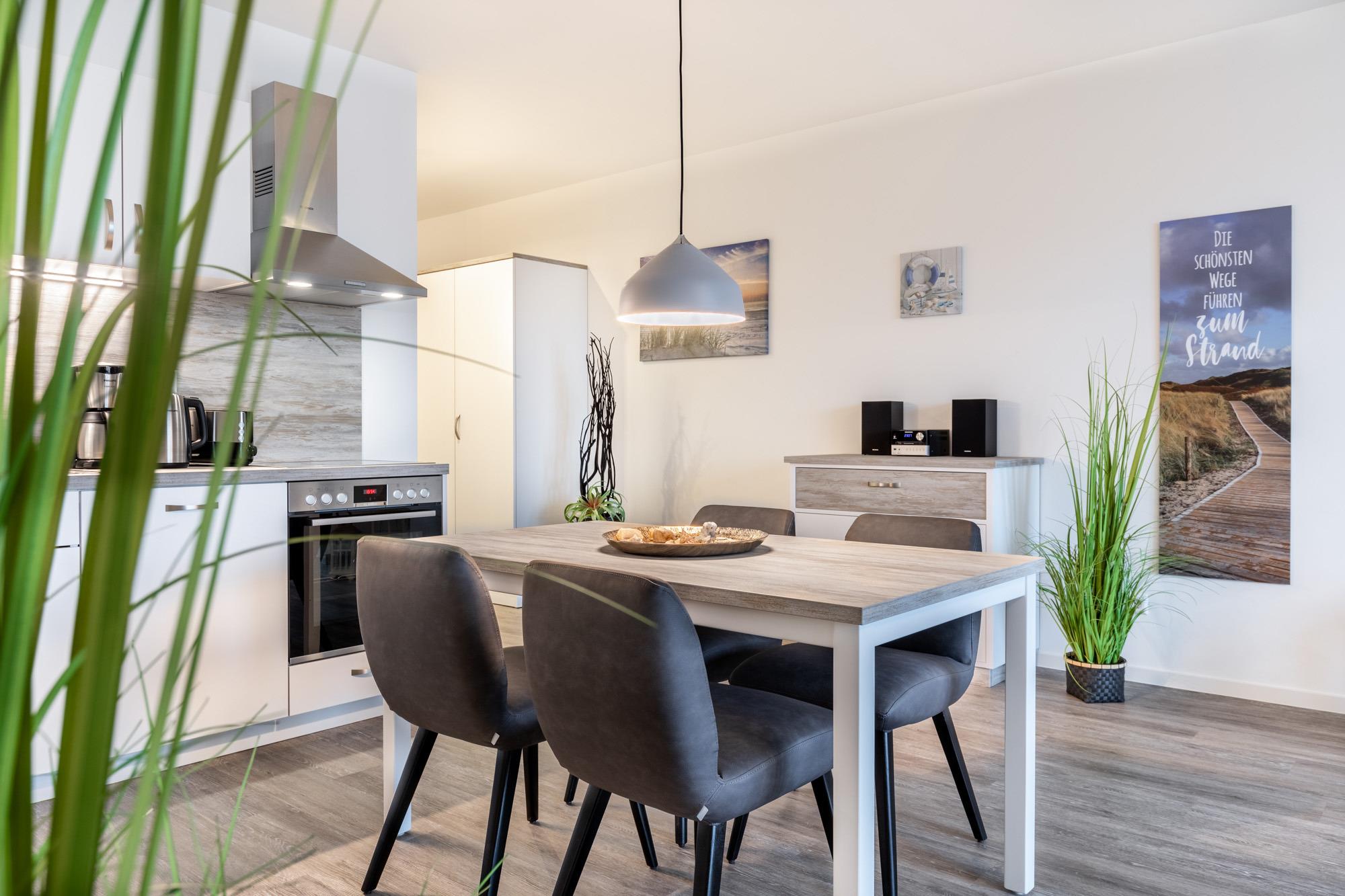 Unsere moderne und komfortable Ferienwohnung für 4 Personen liegt direkt in der 1. Reihe am Strand mit Meerblick! Die 58m2 große Wohnung mit 1 Schlafzimmer und 1 Schlafcouch ist mit einer komplett eingerichteten Küche incl. Geschirrspüler, Fußbodenheizung und sonnenschutzverglasten, bodentiefen Fenstern ausgestattet. Auf dem Südwest Balkon können Sie den traumhaften Blick aufs Meer genießen! Kostenlose Sauna direkt in der Anlage! Abschließbarer Raum für Ihre Fahrräder und e-bikes. Tiefgaragenplatz und Aufzug vorhanden. Kostenlose Nutzung von Waschmaschine und Trockner.