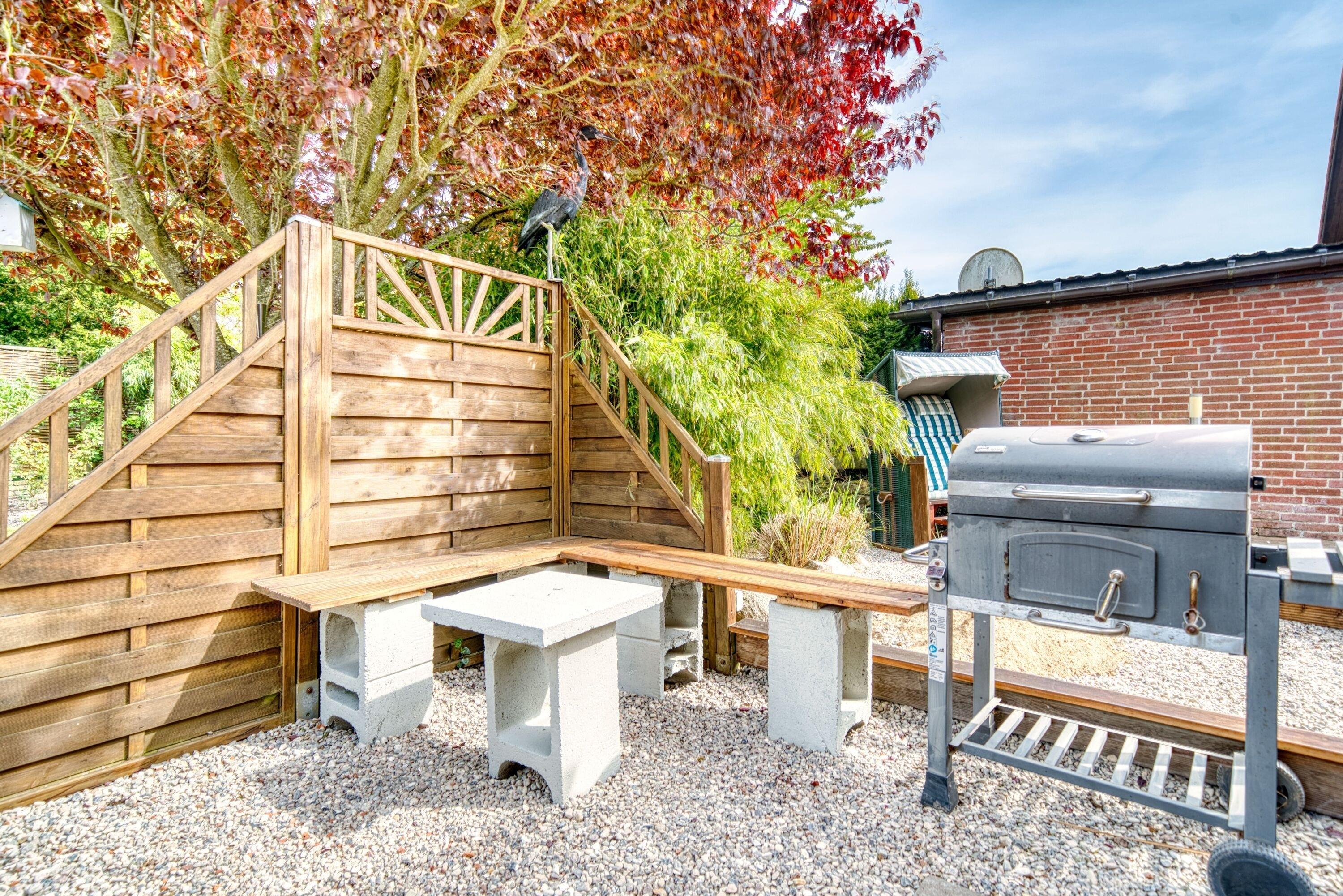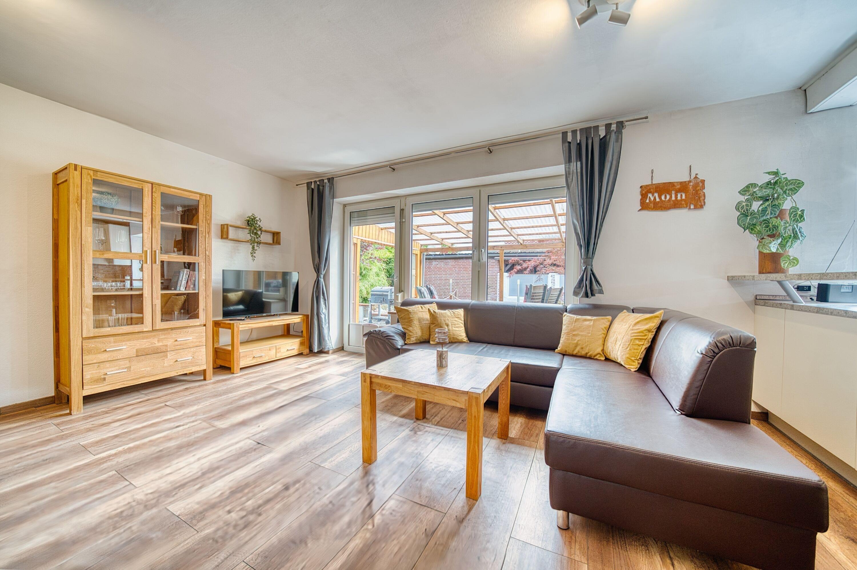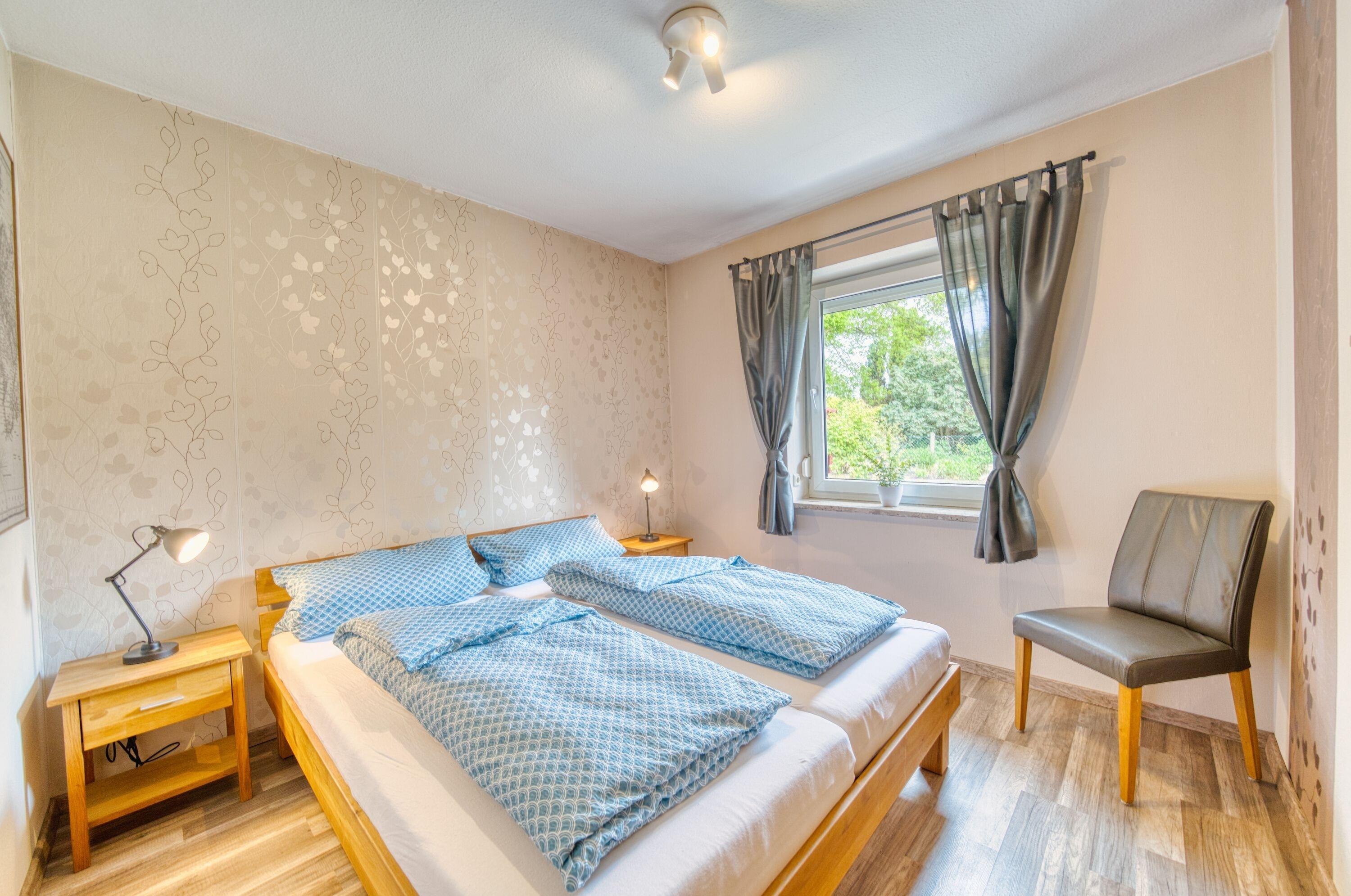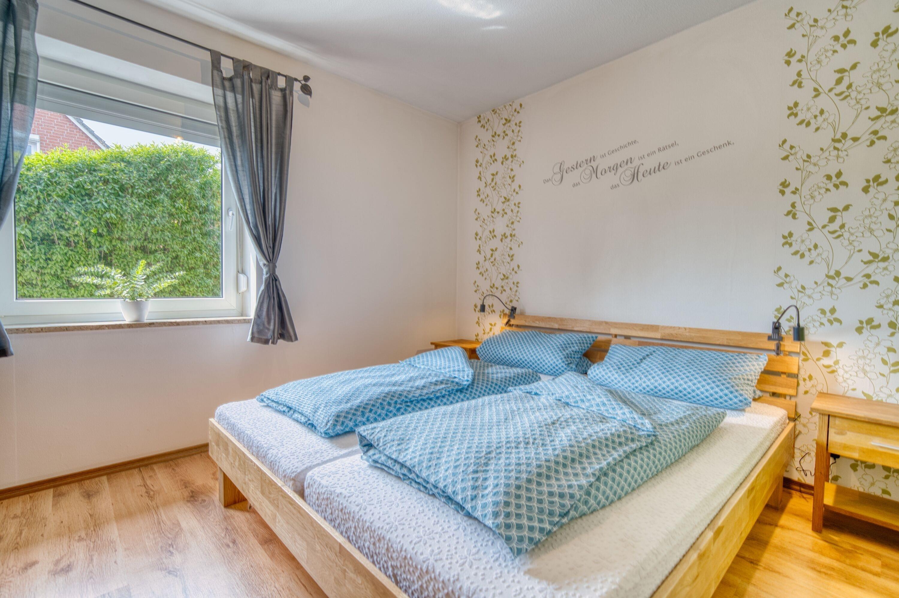 Die Wohnung verfügt über ein Schlafzimmer mit Doppelbett, ein Gästezimmer mit Doppelbett sowie ein Wohnzimmer mit Schlafsofa. Die Küche ist mit Backofen, Geschirrspüler und Gefrierfach ausgestattet. Entspannen können Sie am Kaminofen oder im überdachten Gartenbereich, ein Grill ist ebenfalls vorhanden. Fahrräder lassen sich sicher abstellen.