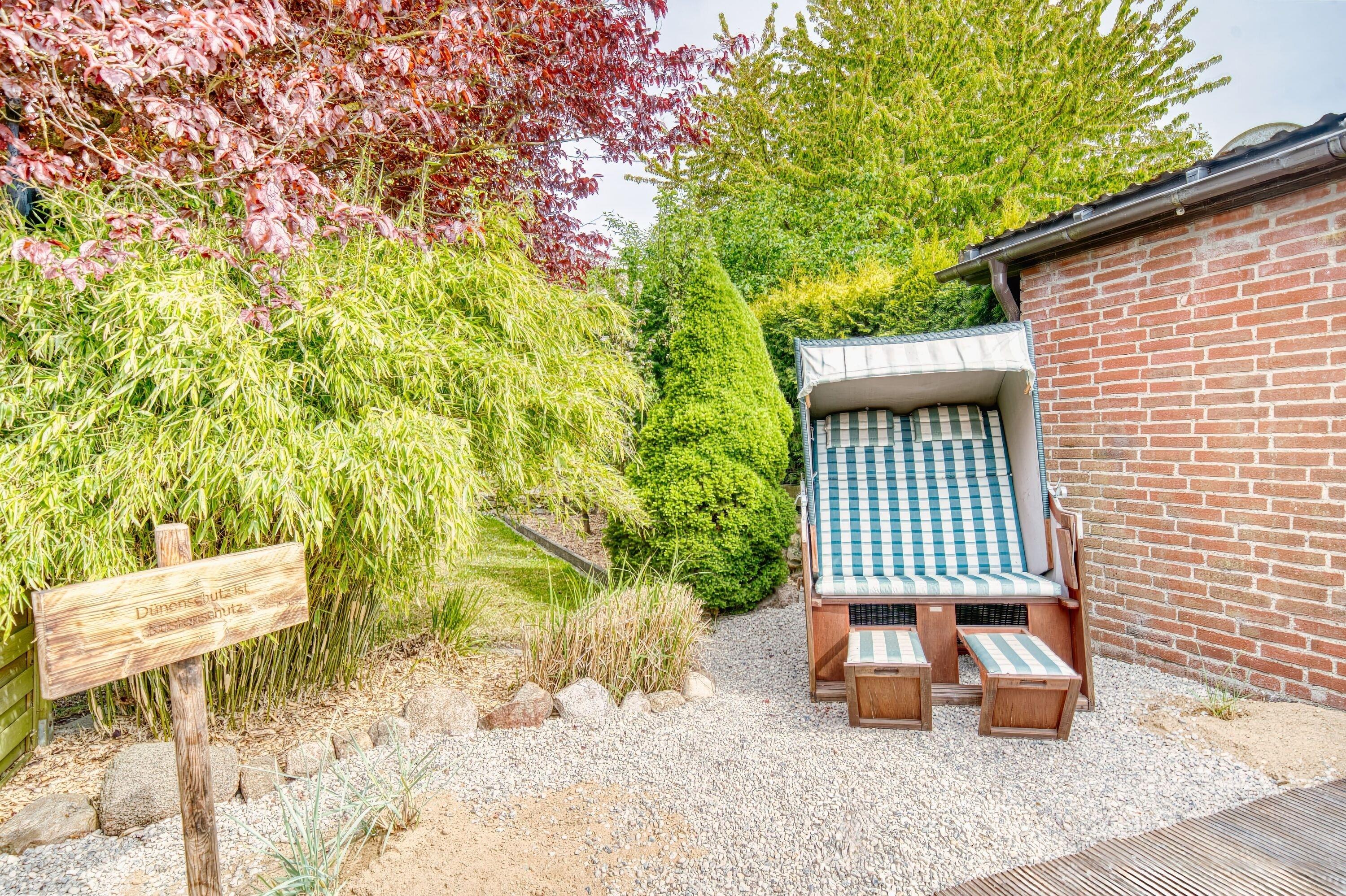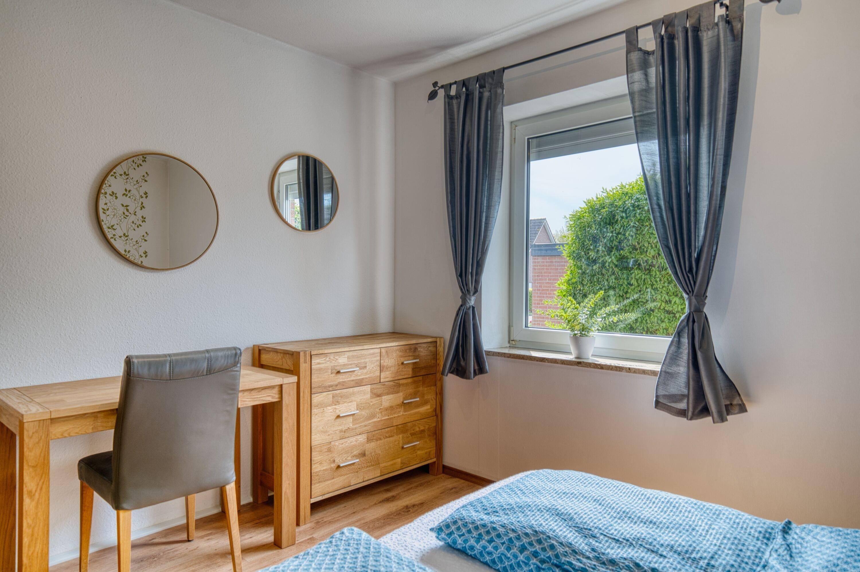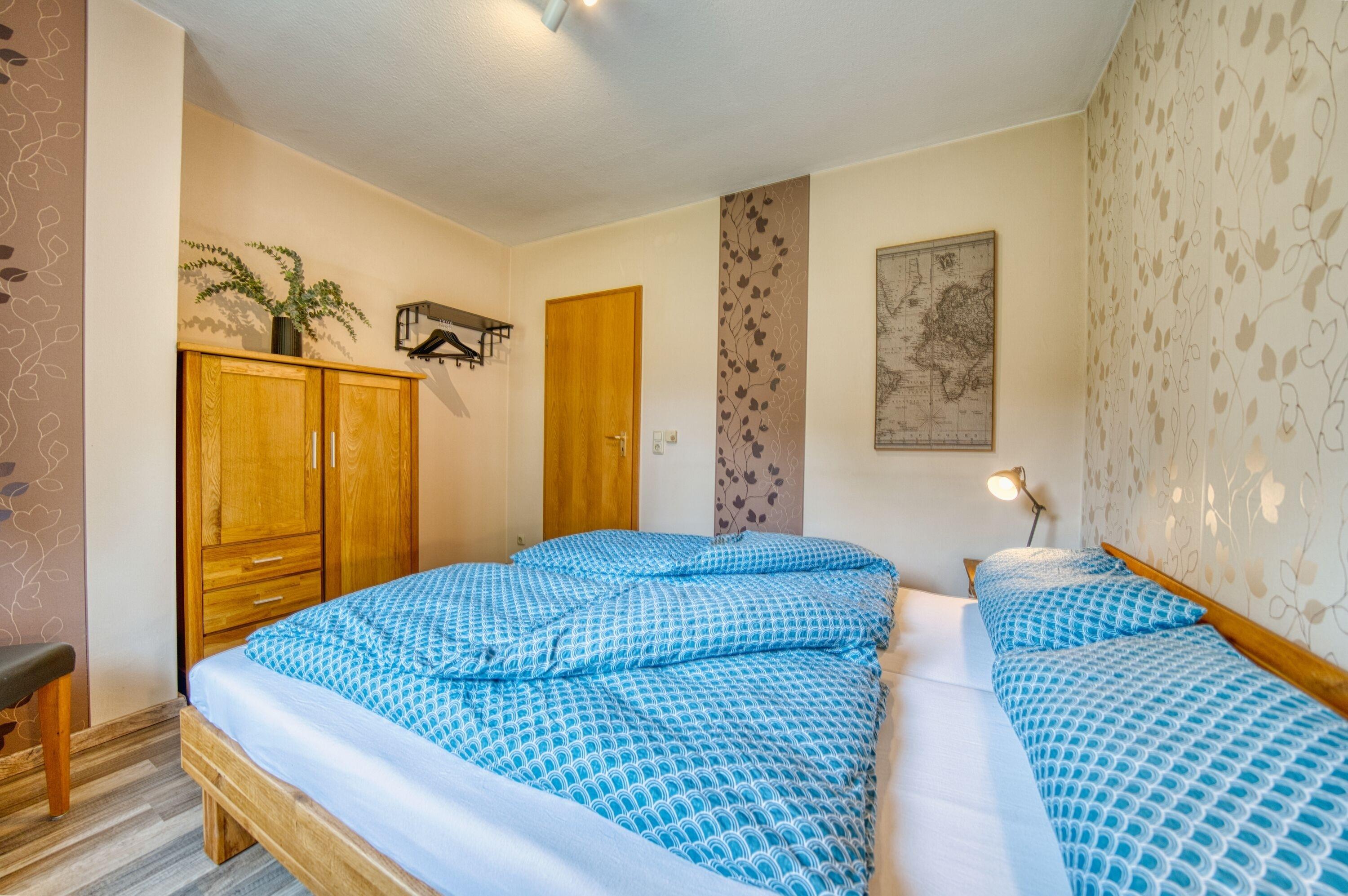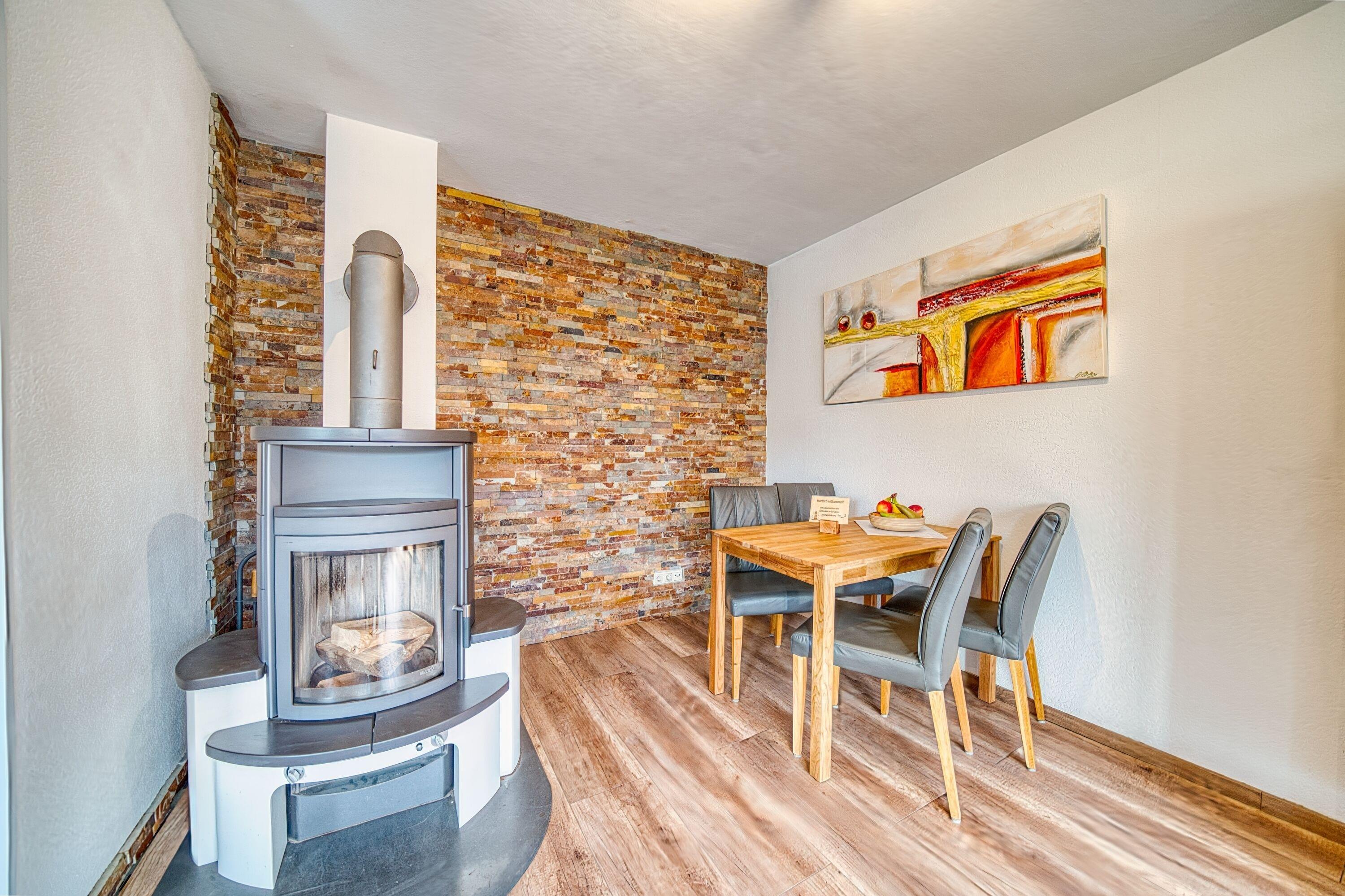 Die Wohnung verfügt über ein Schlafzimmer mit Doppelbett, ein Gästezimmer mit Doppelbett sowie ein Wohnzimmer mit Schlafsofa. Die Küche ist mit Backofen, Geschirrspüler und Gefrierfach ausgestattet. Entspannen können Sie am Kaminofen oder im überdachten Gartenbereich, ein Grill ist ebenfalls vorhanden. Fahrräder lassen sich sicher abstellen.
