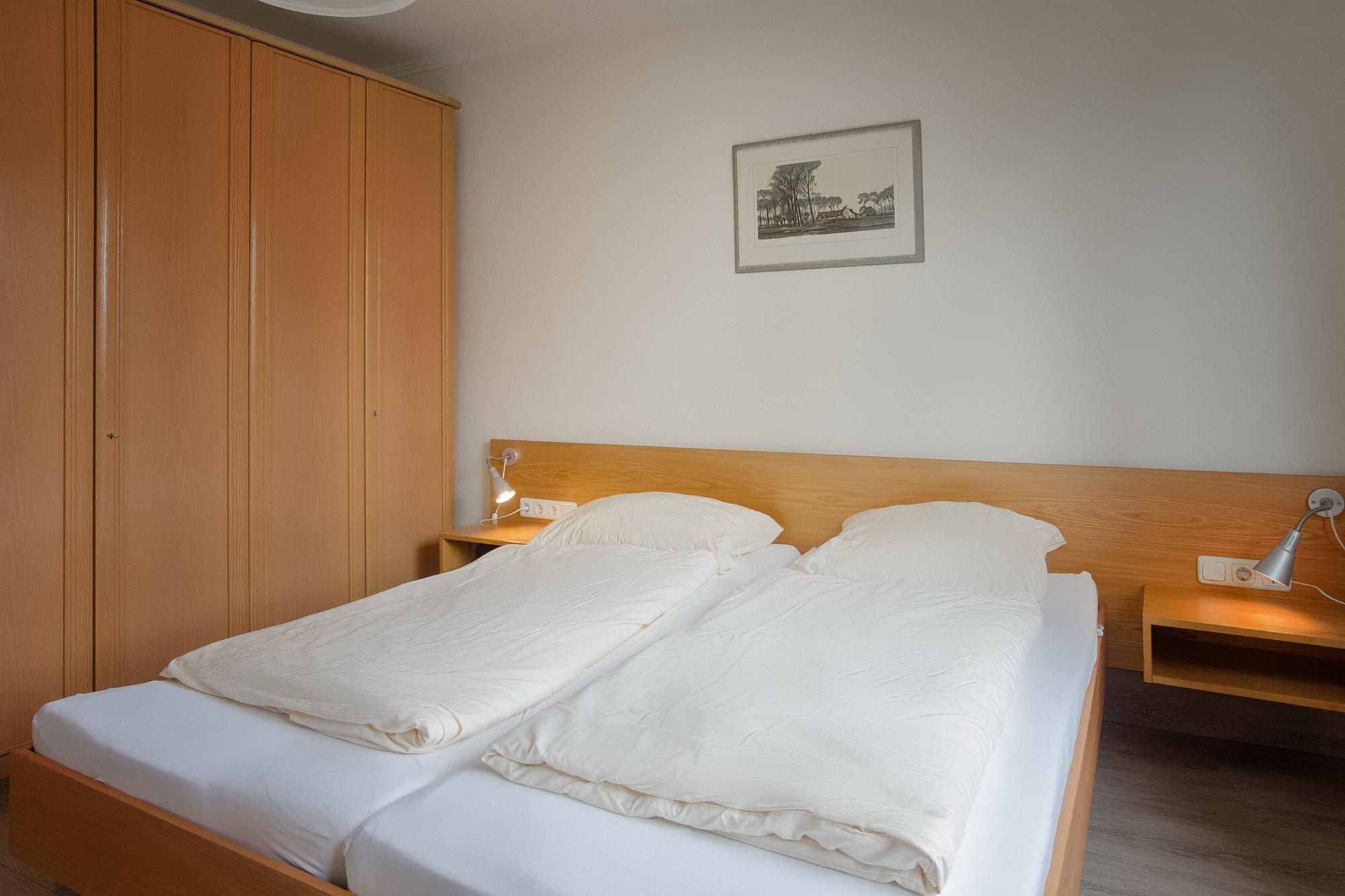 Die Ferienwohnung verfügt über zwei separate Schlafzimmer. Ein Schlafzimmer ist mit einem komfortablen Doppelbett ausgestattet, das zweite Schlafzimmer bietet Einzelbetten und eignet sich hervorragend für Kinder oder weitere Mitreisende. Bei Bedarf kann zusätzlich ein Beistellbett genutzt werden. Für Familien mit kleinen Kindern stehen außerdem ein Hochstuhl sowie ein Reisebettchen zur Verfügung, sodass auch die kleinsten Gäste bestens versorgt sind.