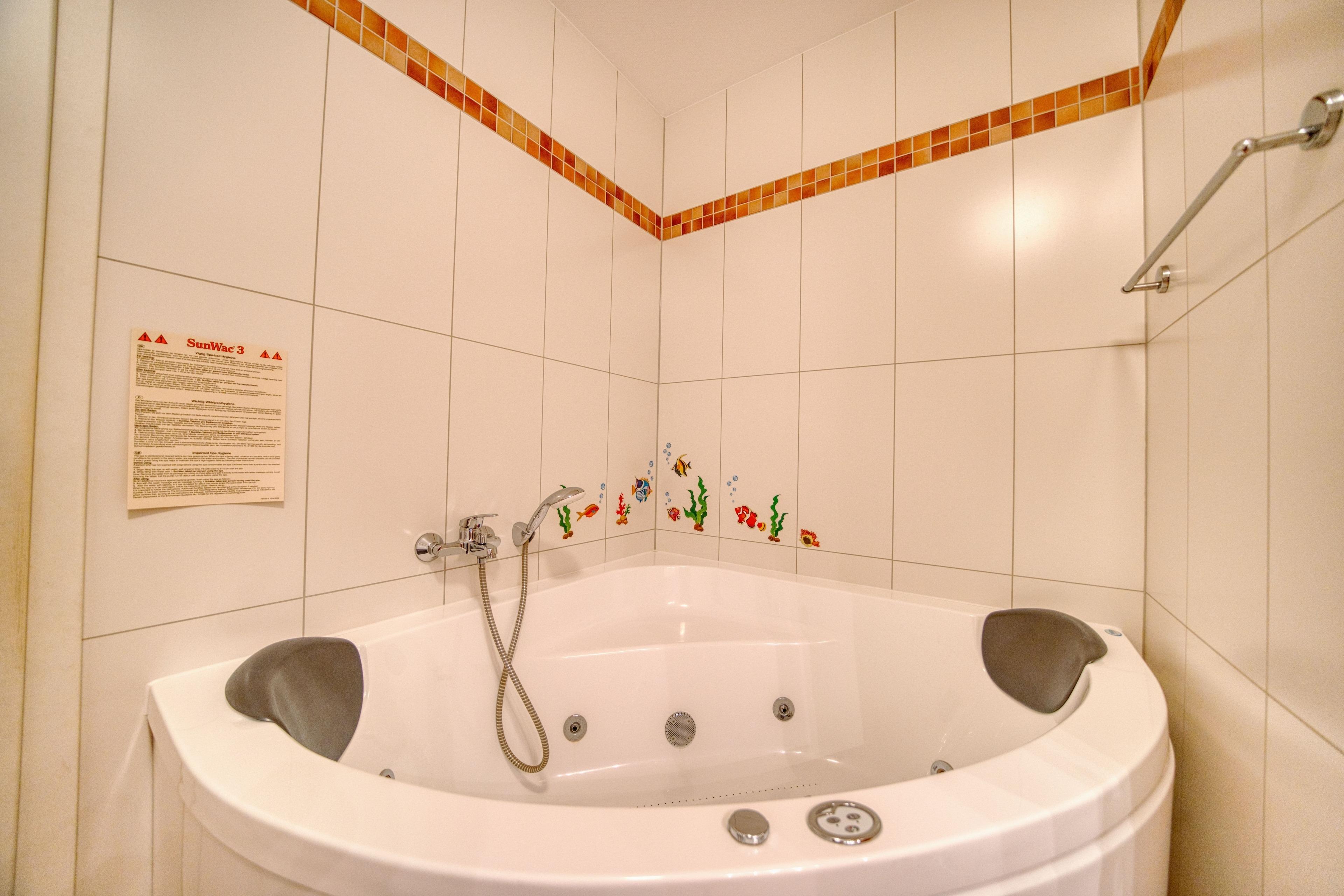 Zwei Schlafzimmer mit Doppelbett, Kleiderschrank und SAT-TV.Badezimmer mit Regendusche, Whirlpool und Sauna. Fußbodenheizung in Wohnräumen, Küche und Bad.