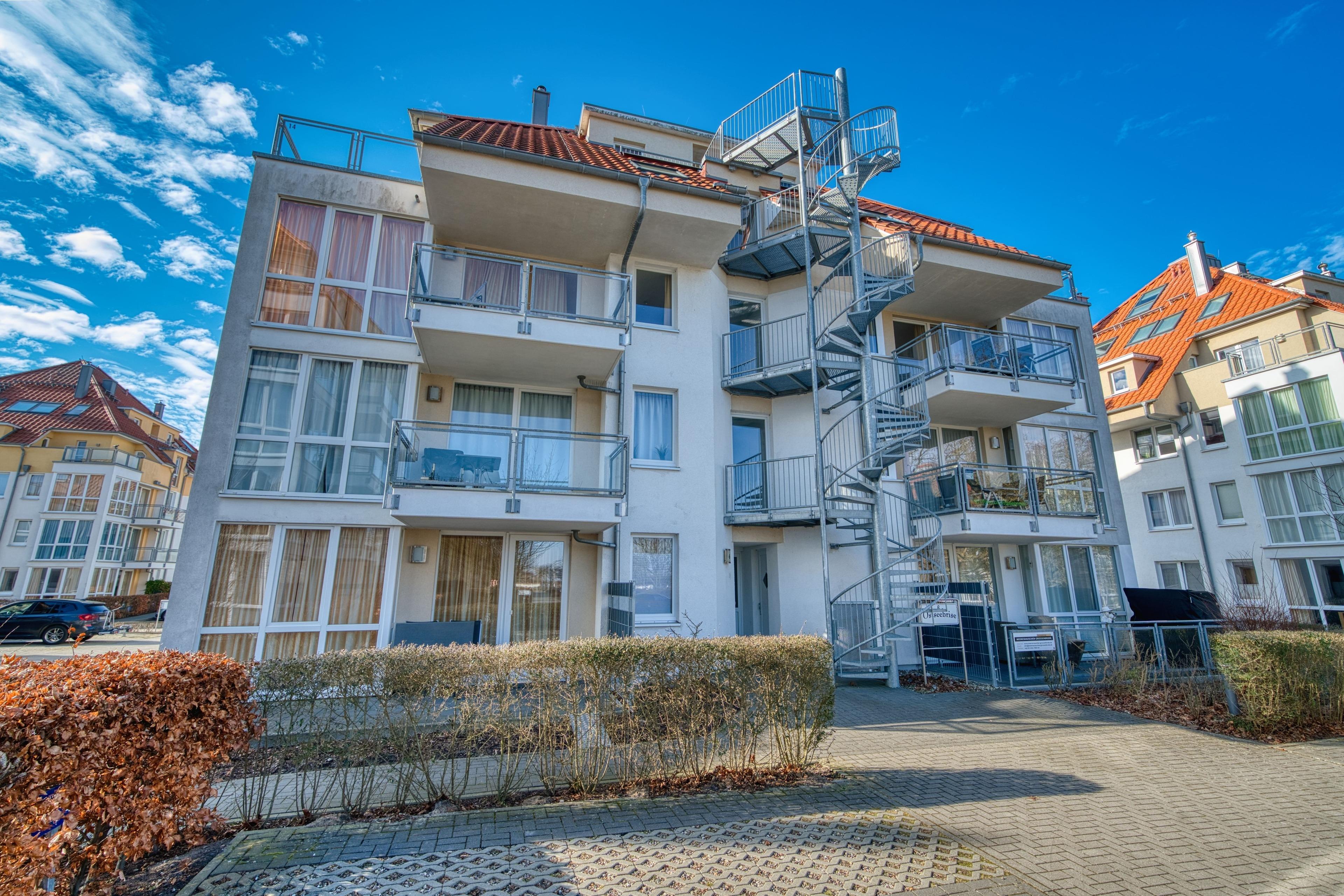 Helle Ferienwohnung im 1. Obergeschoss im Haus Ostseebrise im Strandpark Großenbrode mit 59 m² Wohnfläche für bis zu 4 Personen. Der Ostseesandstrand ist nur etwa 150 m entfernt. Vom Balkon in Süd-Lage ist zwischen den Häusern sogar die Ostsee zu erkennen.