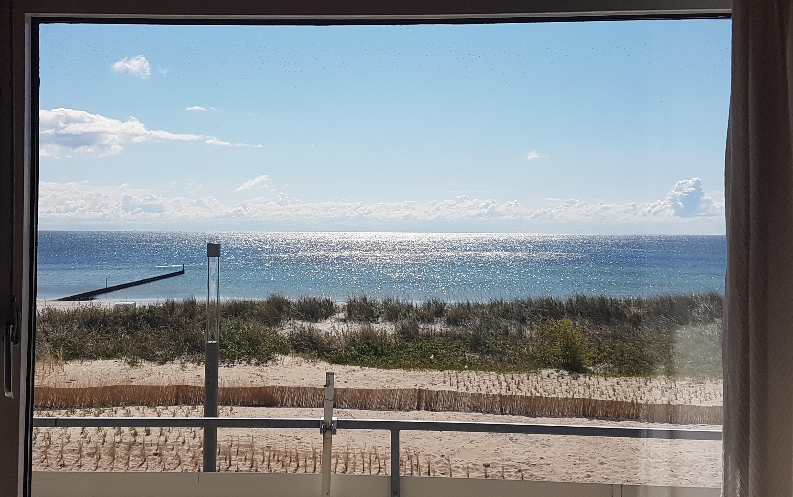 Moderne Ferienwohnung mit Meerblick und Balkon direkt am feinsandigen Südstrand von Großenbrode.