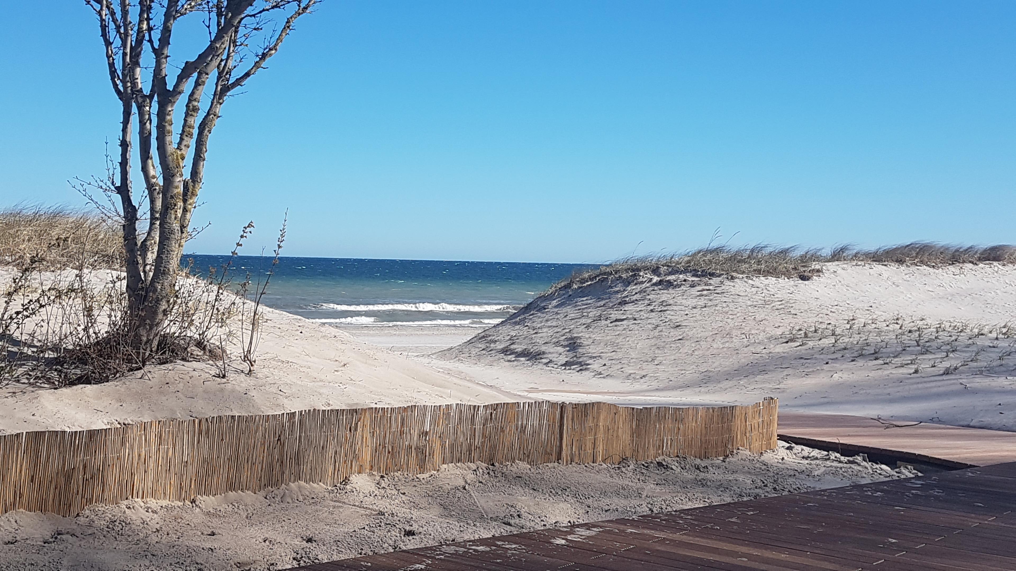 Sie wohnen in einer komplett eingerichteten Ferienwohnung mit Südlage und herrlichem Meerblick aus dem ersten Stock einer zweistöckigen Anlage direkt am feinsandigen Südstrand von Großenbrode.
