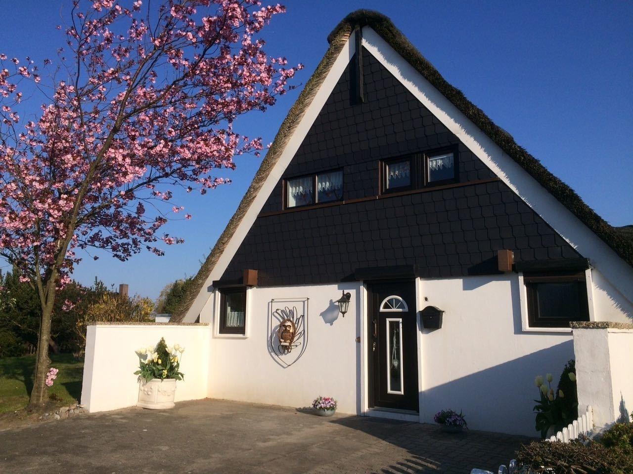 Romantisches Reetdachhaus in Großenbrode nahe Ostseestrand mit Terrasse und Meerblick.
