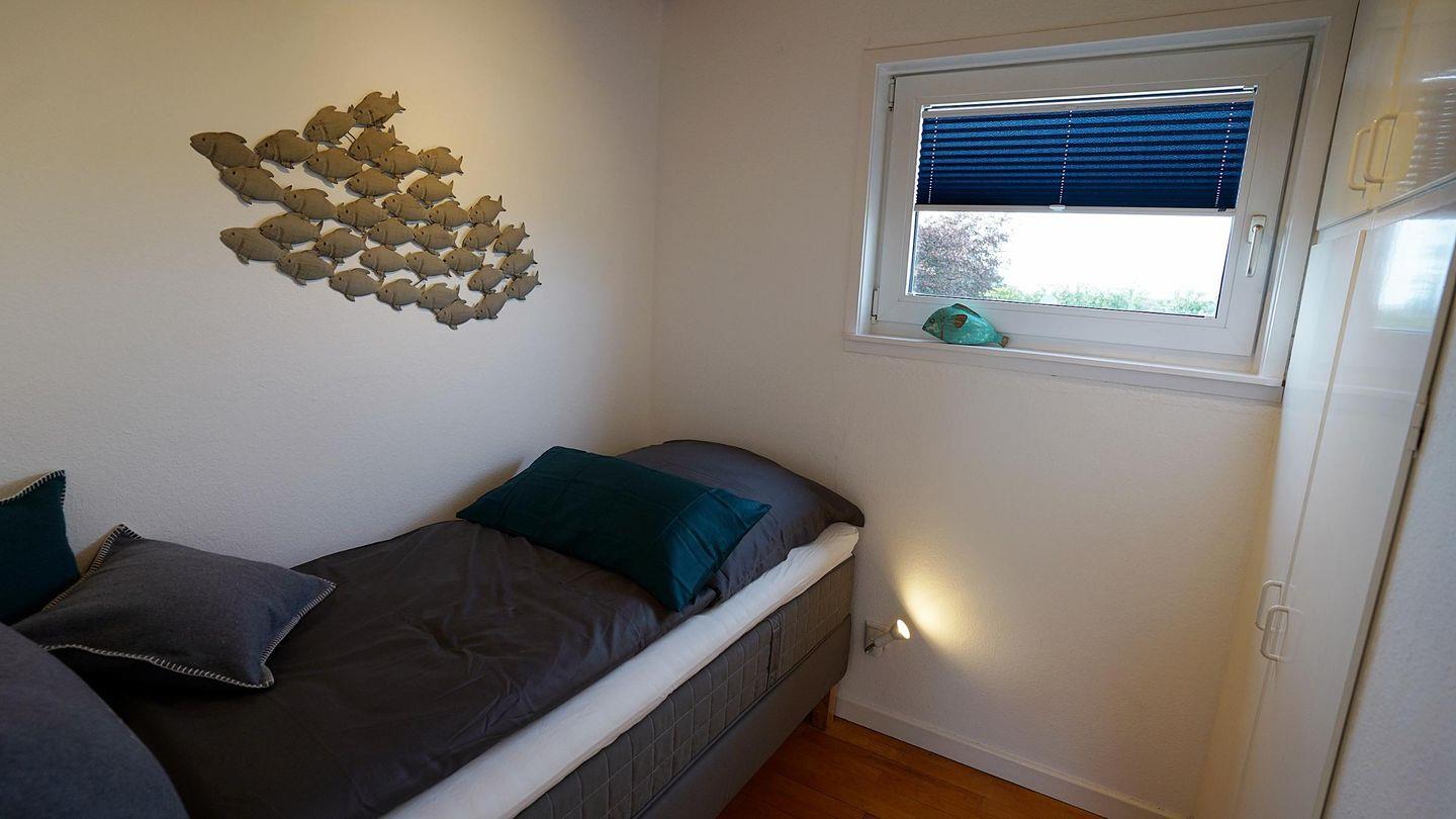 In einem zweiten kleinen Schlafzimmer gibt es eine zusätzliche Schlafmöglichkeit in Form eines großen, ausklappbaren Bettsofas für 1-2 Personen.