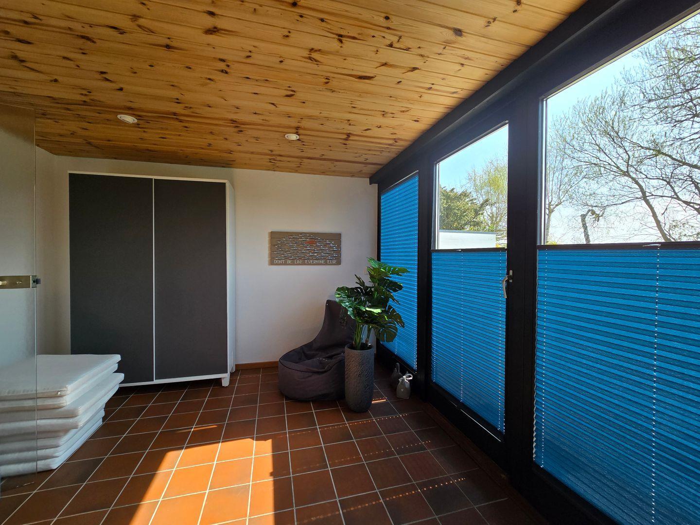 In der oberen Etage finden Sie zusätzlich zwei Schlafräume - jeweils ausgestattet mit einem Einzelboxspringbett (90*200), welche für einen hohen Schlafkomfort sorgen und hierdurch zu einem hohen Erholungsfaktor beitragen. Das neugestaltete Duschbad mit WC wurde funktional und modern eingerichtet. Als Wärmequelle wurde ein Infrarotspiegel eingebaut.