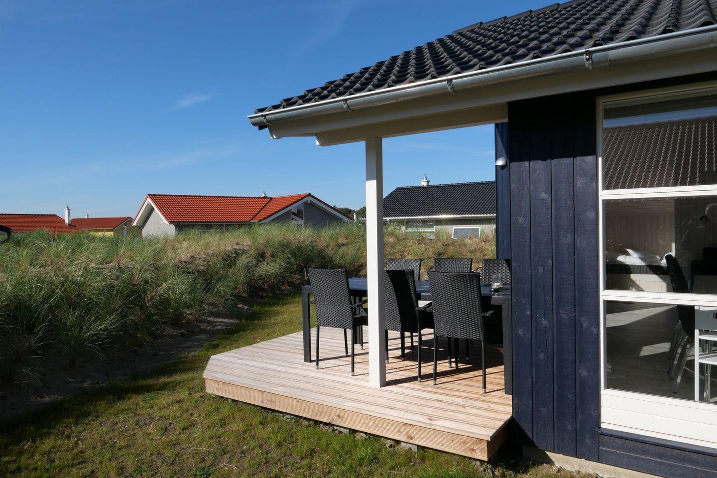 Vom Wohnbereich aus haben Sie Zugang zur teils überdachten, mit Gartentisch und Stühlen möblierten Terrasse, auf der Sie die langen Sommerabende genießen können. 2 Sonnenliegen stehen Ihnen ebenfalls zur freien Verfügung.