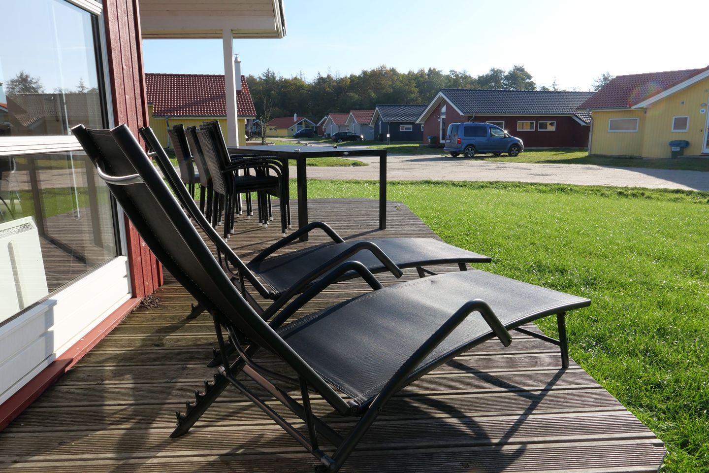 Vom Wohnbereich aus haben Sie Zugang zur teils überdachten, mit Gartentisch und Stühlen möblierten Terrasse, auf der Sie die langen Sommerabende genießen können. 2 Sonnenliegen stehen Ihnen ebenfalls zur freien Verfügung.