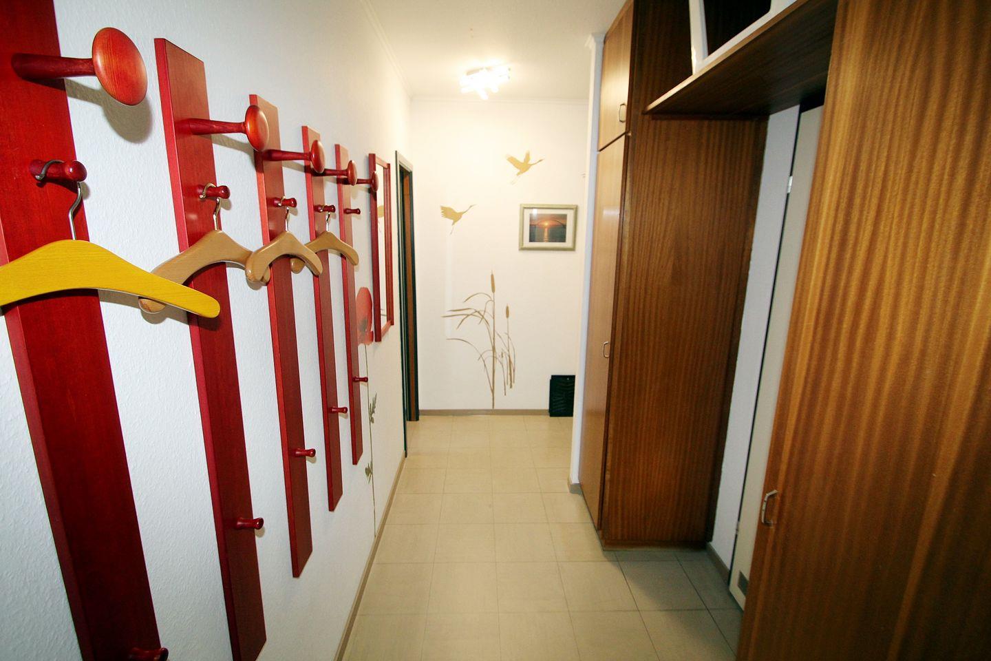 Im Flur werden Sie dank Schuhschrank, Wandschränken und Garderode mit viel Stauraum für Schuhe, Jacken und Reisegepäck empfangen.