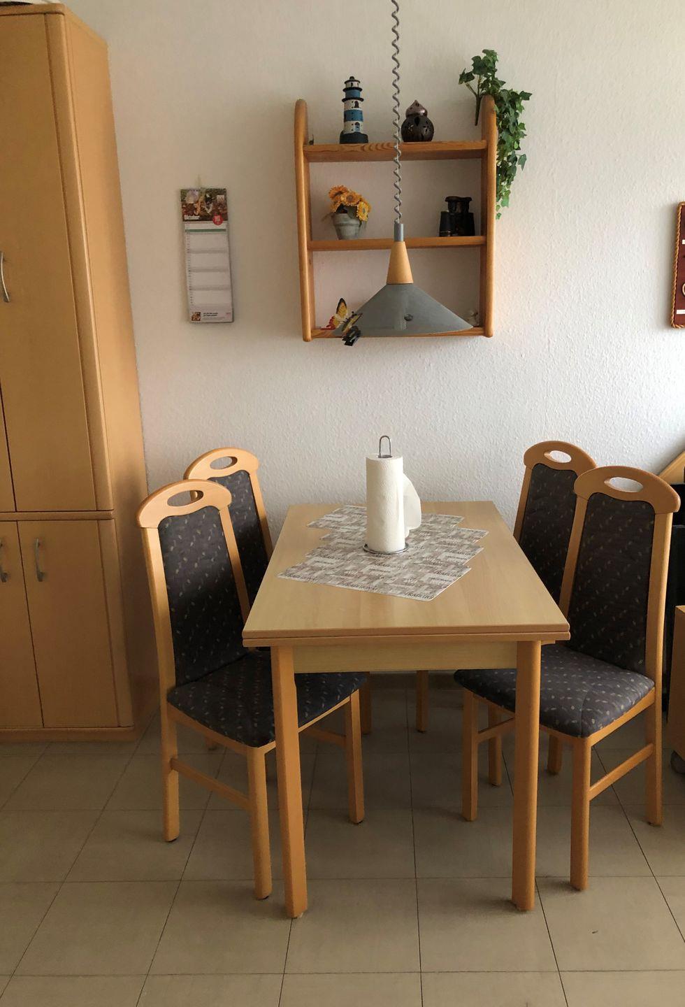 Der Essbereich bietet Platz für 4 Personen - hier lässt es sich auch mit Besuch gemeinsam Essen, Spielen und Klönen.