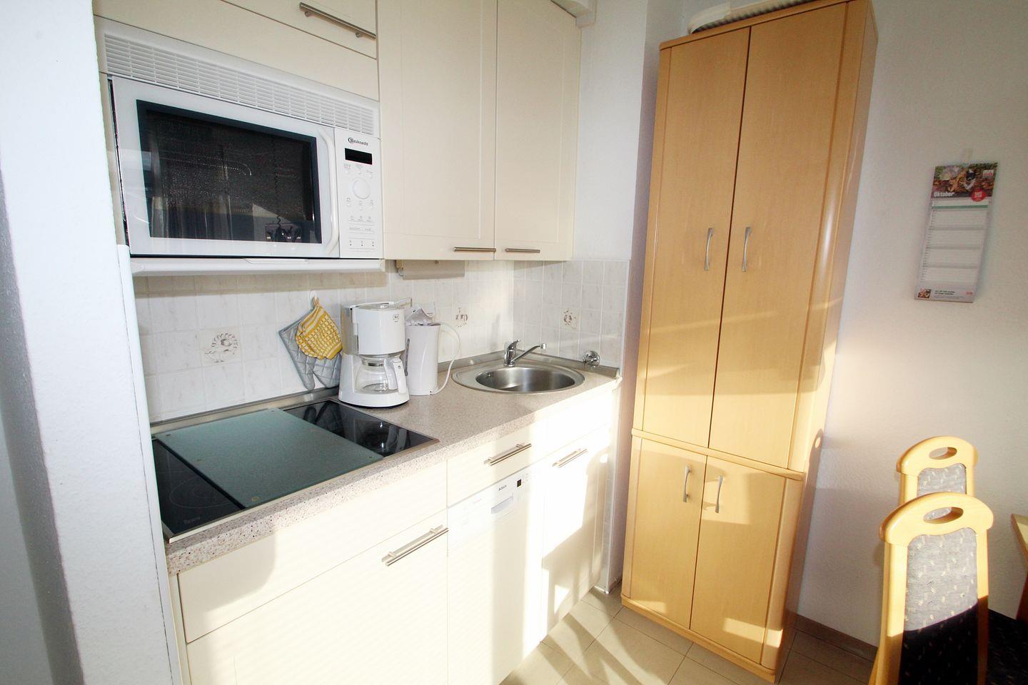 Die kleine Küche bietet trotz Ihrer kompakten Maße alle Voraussetzungen um sich in Ihrer Ferienunterkunft selbst zu versorgen: