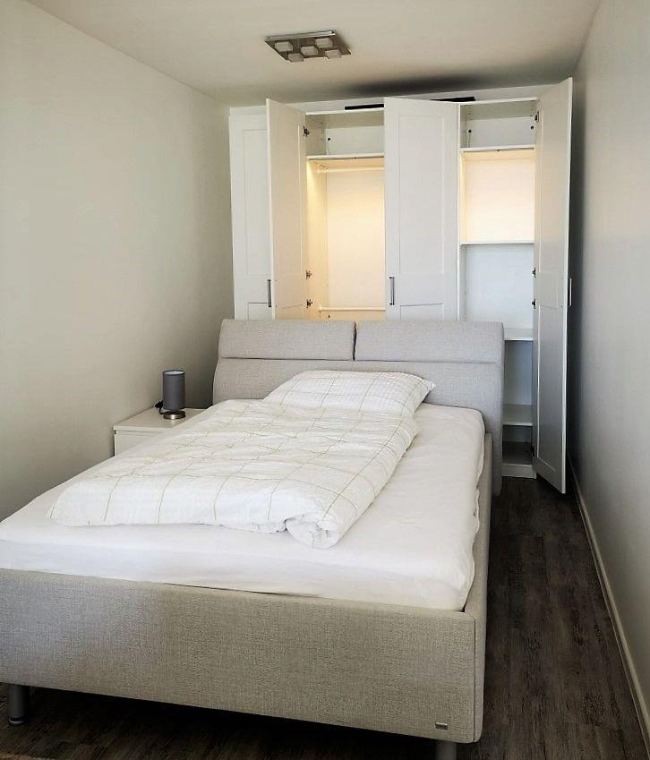 Im Schlafbereich steht ein hochwertiges RUF-Doppelbett (140*200) für entspannte Urlaubsnächte bereit. Dahinter findet sich jede Menge Platz für Ihre Urlaubsgarderobe in dem großen 4-türigen Kleiderschrank mit Innenbeleuchtung.