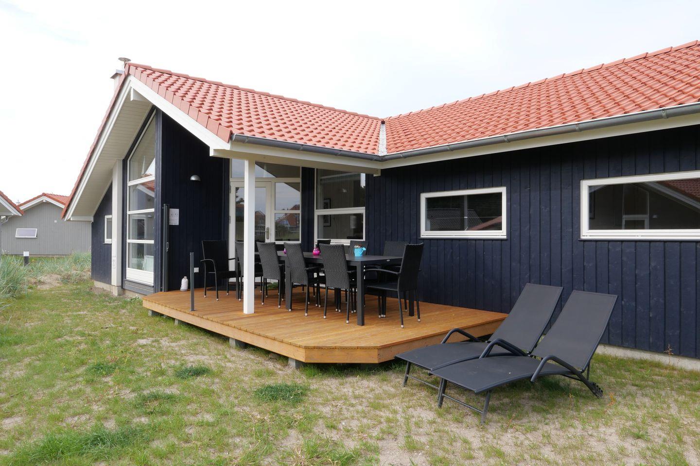 Vom Wohnbereich aus haben Sie Zugang zur teils überdachten, mit großem Gartentisch und Stühlen möblierten Terrasse, auf der Sie die langen Sommerabende genießen können. 2 Sonnenliegen stehen Ihnen ebenfalls zur freien Verfügung.