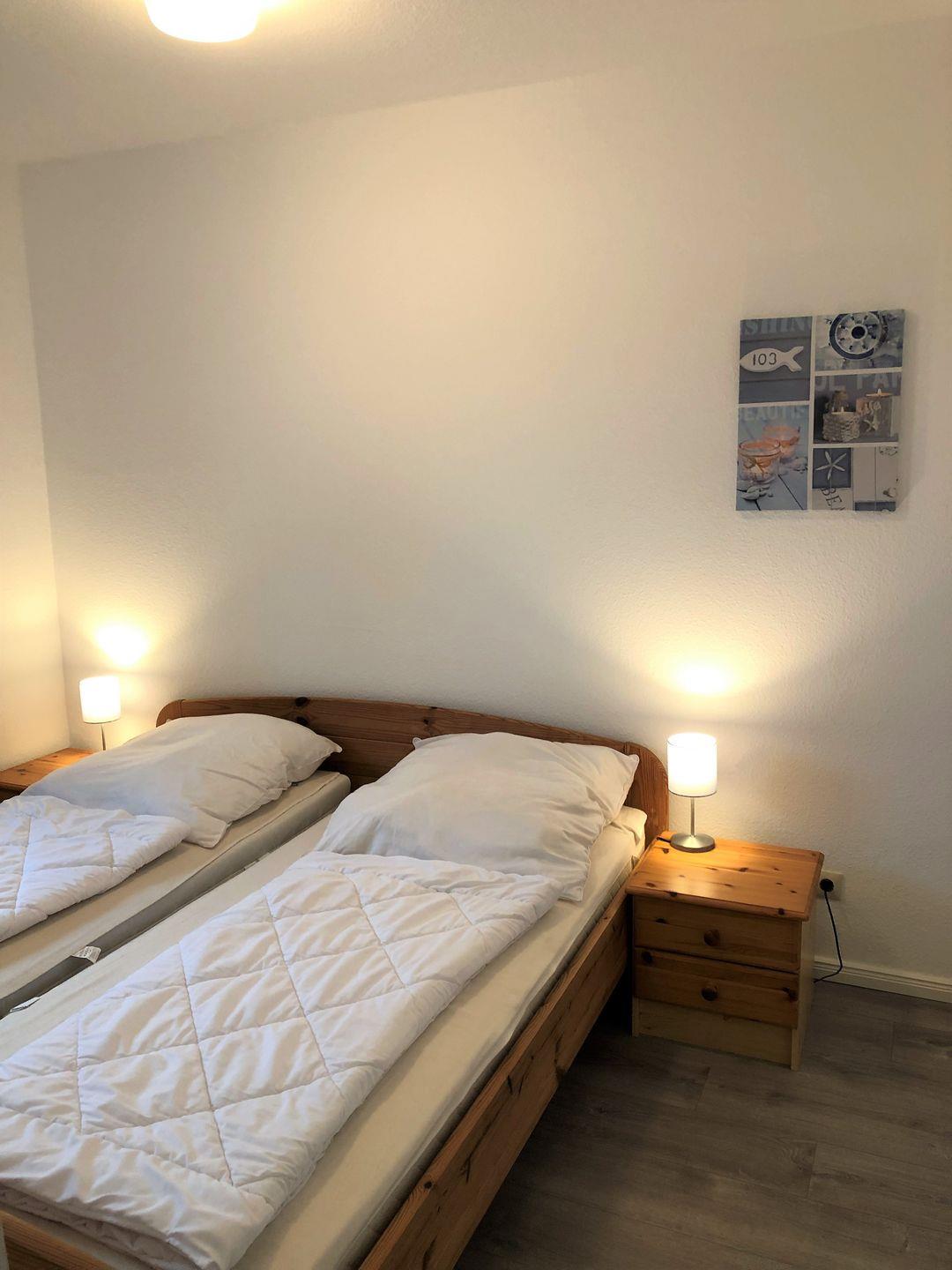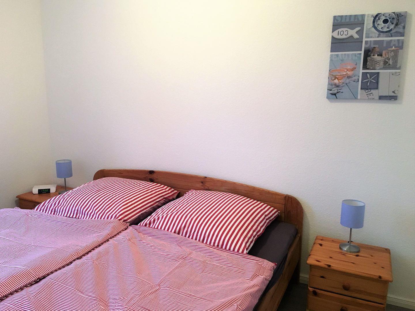 Das zweite Schlafzimmer bietet ein großes Doppelbett (2*90*200 cm) und zwei Nachtschränke. Beide Schlafzimmer sind mit Verdunklungsvorhängen für einen ungestörten Schlaf ausgestattet.