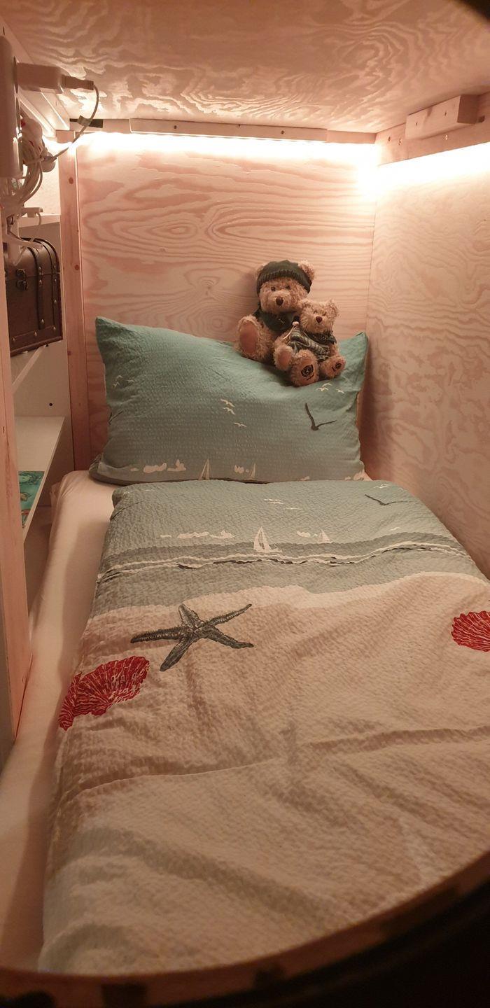 Unter dem Bett befindet sich auch eine kleine Schlafkoje, welche zusätzlich für den kleinen Gast genutzt werden kann. Diese Räumlickeiten lassen sich wunderbar über eine Außenjalousie verdunkeln, so dass gemütlichen Feriennächten nichts im Wege steht.