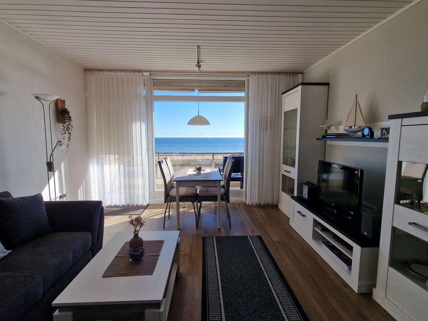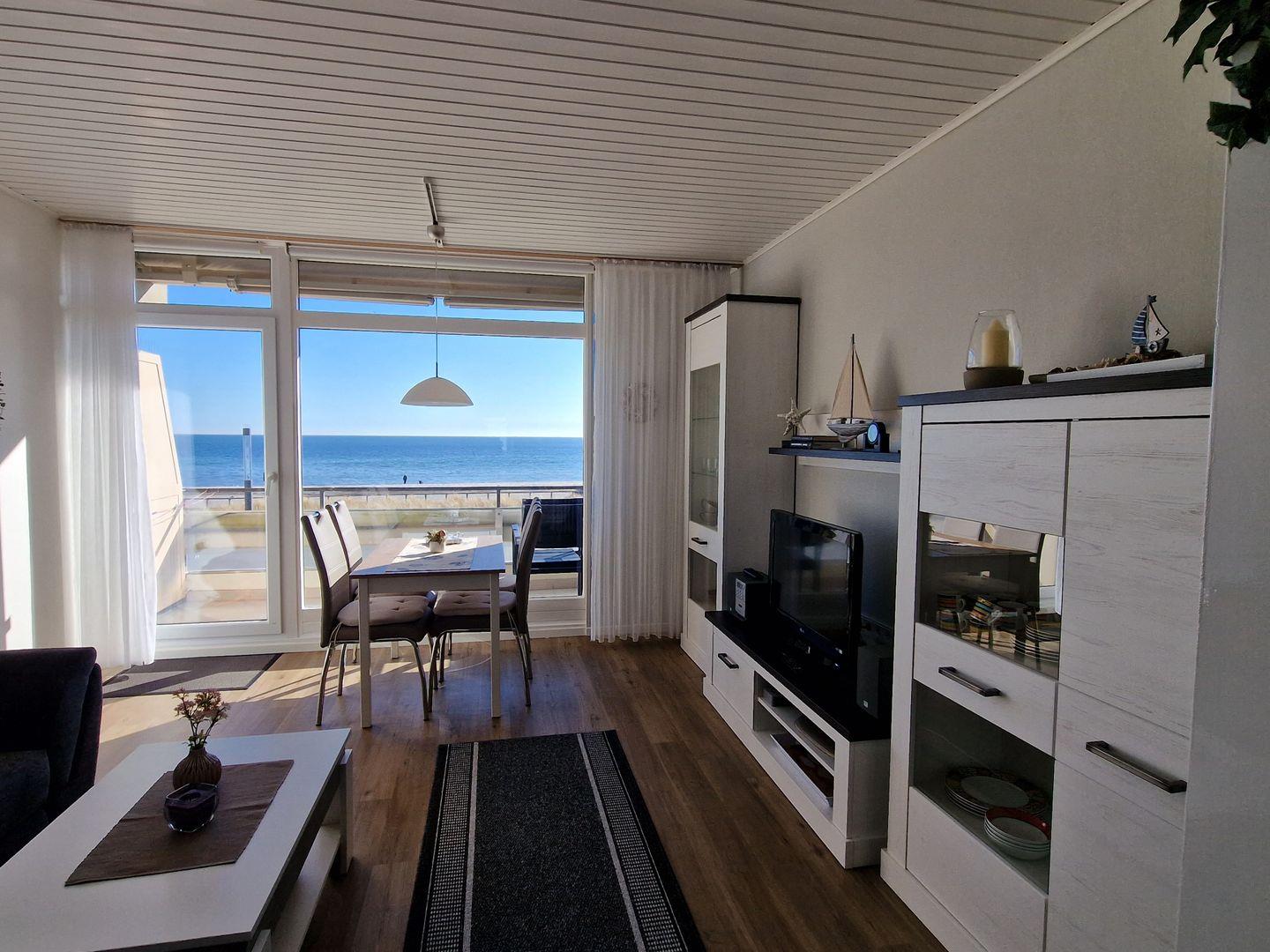 Die 36 qm große Wohnung besticht durch den einmaligen Ausblick auf das Meer und die zentrale Lage zum neu gestalteten Seebrückenvorplatz.