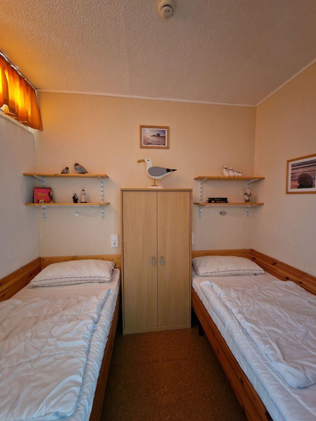 Vom Wohnzimmer aus gelangen Sie auf den Südbalkon - hier können Sie herrlich auf den Sonnenliegen oder den Gartenmöbeln relaxen. Die Küchenzeile ist zusätzlich zu Kaffeemaschine, Wasserkocher und Toaster mit einer Mikrowelle mit Grillfunktion ausgestattet. Das Schlafzimmer befindet sich im hinteren Bereich der Wohnung und wurde mit zwei Einzelbetten ausgestattet.