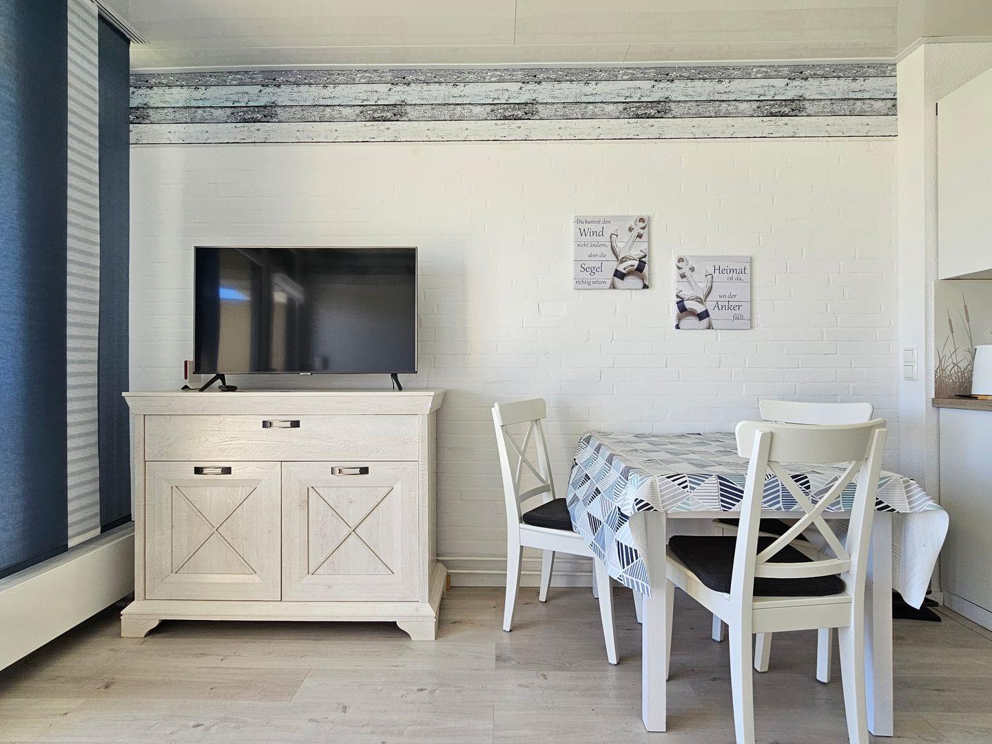 Genießen Sie Ihr zubereitetes Essen, gemütliche Spieleabende oder gute Gespräche am großen Esstisch mit herrlichem Blick auf Dünen, Seebrücke und Meer. Beobachten Sie das Treiben und lauschen Sie dem Meeresrauschen.