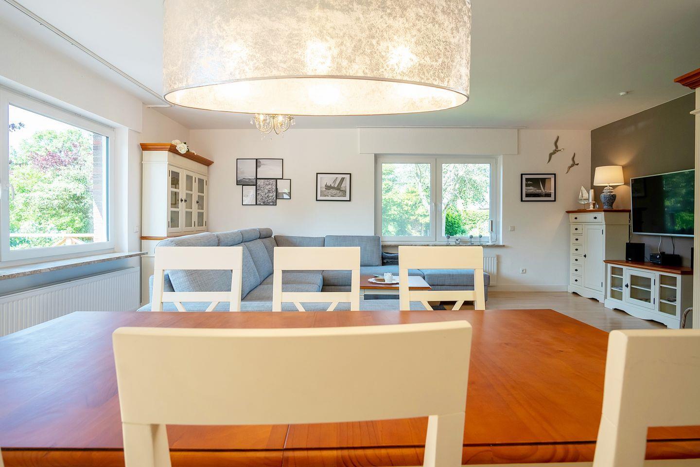 Diese schicke modern eingerichtete Wohnung liegt in einer Sackgassenlage in ruhiger Umgebung im schönen Ort und trotzdem erreichen Sie schnell fussläufig das Meer. Dieses Urlaubsdomizil mit einer Fläche von ca. 100 qm eignet sich hervorragend für 6 Personen und empfängt Sie in Kombination aus Flur, Küche, Wohnbereich und drei Schlafzimmern.