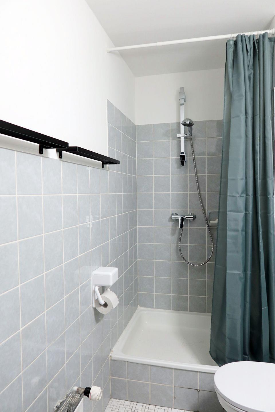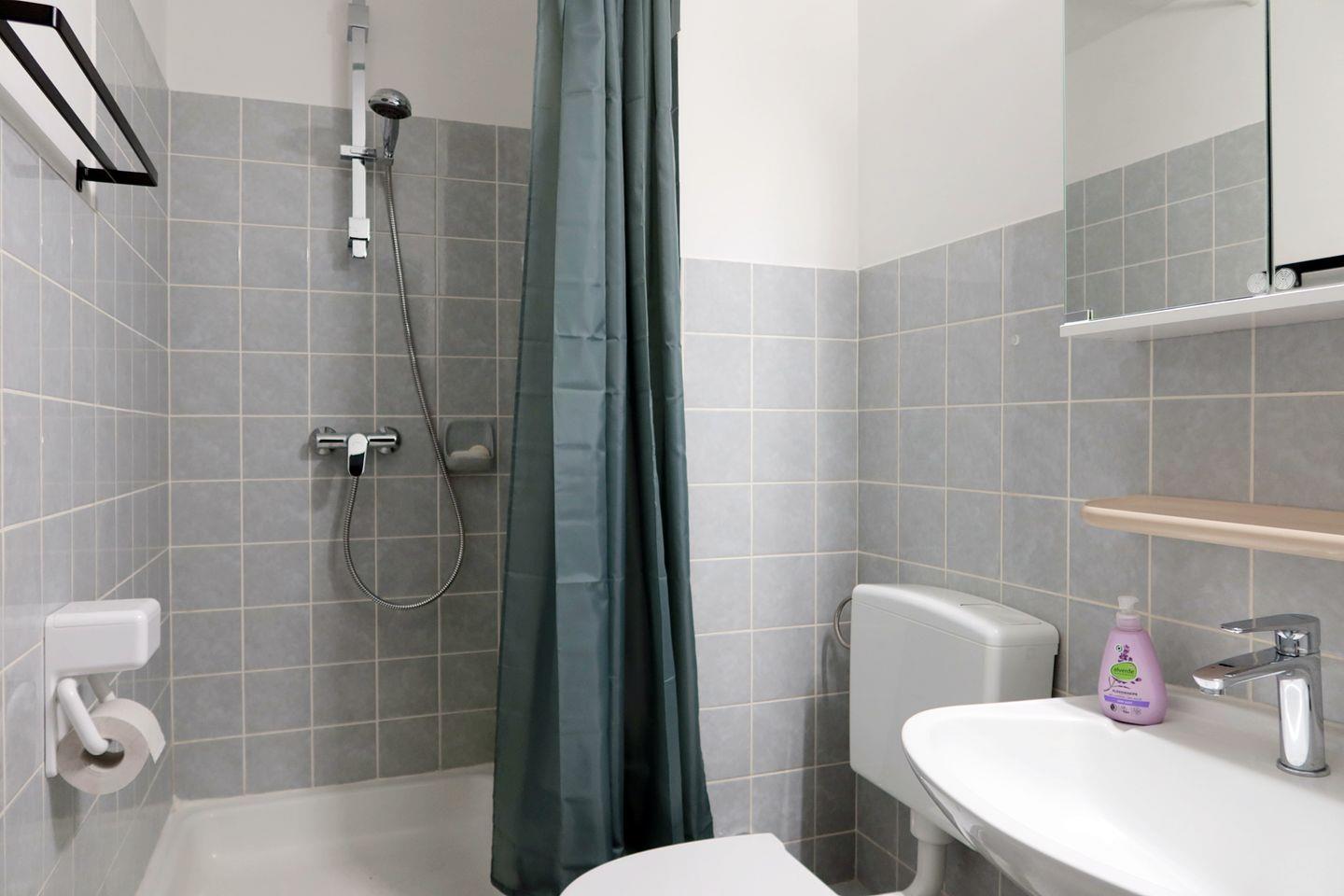 Das innenliegende Duschbad steht Ihnen mit einer Dusche, einem Spiegel und diversen Ablagemöglichkeiten zur Verfügung.