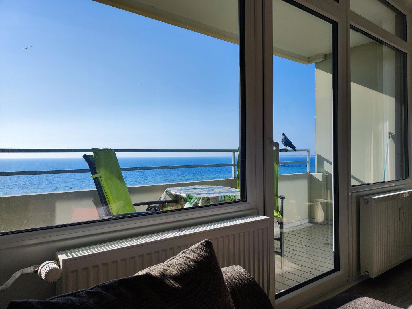 Vom südlichen ausgerichteten Balkon mit herrlichem Ausblick über den gesamten Südstrand, die Promenade und das Meer können Sie die Sonne von früh morgens bis zum späten Nachmittag genießen.
