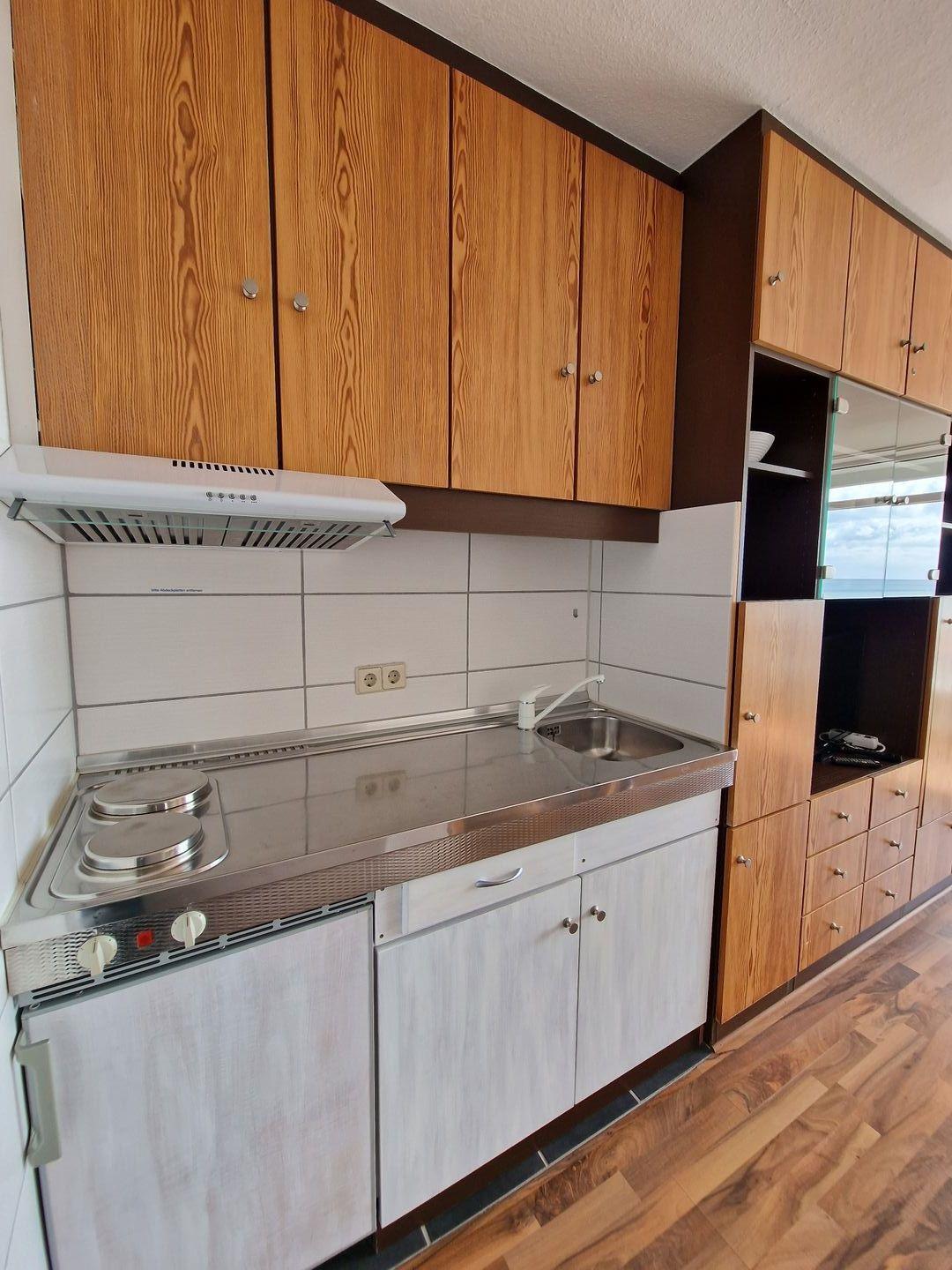 Die Küchenzeile hält ein Herd mit 2 Kochfeldern, Kühlschrank mit integriertem Gefrierfach und eine umfangreiche Ausstattung bereit. Am großen Esstisch -ebenfalls mit Meerblick- schmecken Ihre Mahlzeiten gleich doppelt so gut.