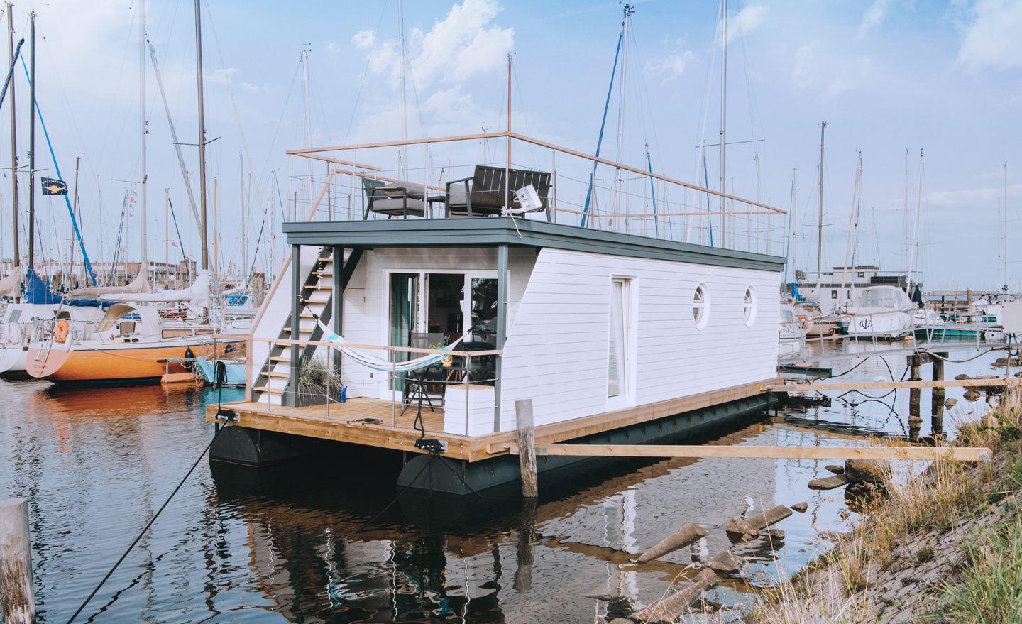 Maritimes Hausboot mit Dachterrasse in Großenbrode
