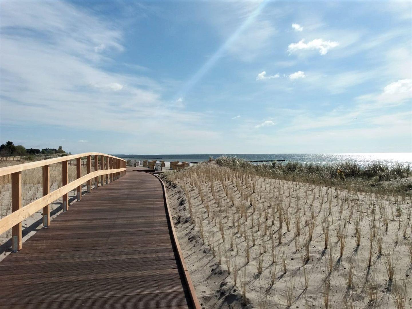 Die großzügige Dachterrasse mit Loungemöbeln lädt mit ihrem 360°-Blick über den Hafen, die Bucht bis zum Meer zum Sonnenbaden, Entspannen und einen Sundowner ein. Fiete's Smart-TV, WLAN, Bücher und Spiele bieten Abwechslung und Unterhaltung.