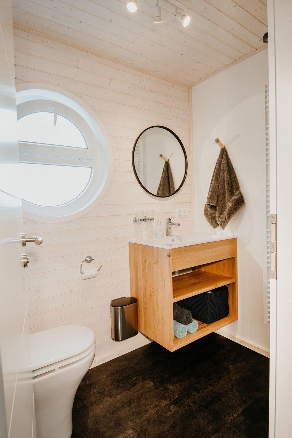 Das hochwertige Badezimmer ist ausgestattet mit einer Dusche. Die moderne Küchenzeile sowie ein Gasgrill bieten dem Hobbykoch kulinarische Entfaltungsmöglichkeiten.