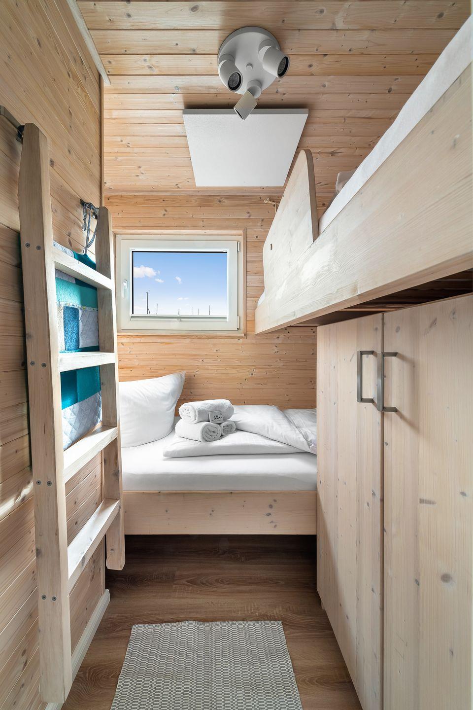 Das Boot verfügt über zwei separate, abgeschlossene und gemütliche Schlafräume. Einmal mit Doppelbett (200x140 cm)