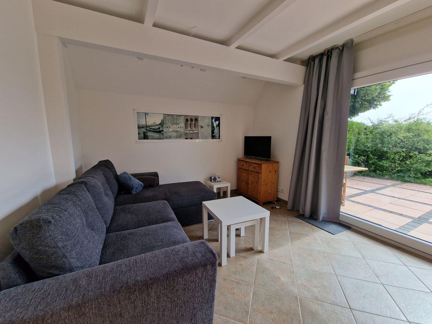 Der gemütliche Wohnbereich mit einer hochwertigen Couchgarnitur, TV und Essbereich direkt am Fenster lädt ebenfalls zur Entspannung ein. Eine Elektro -Flächenspeicherheizung erzeugt in der kühleren Jahreszeit eine wohlige Wärme.