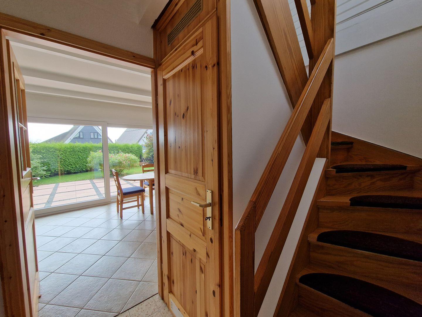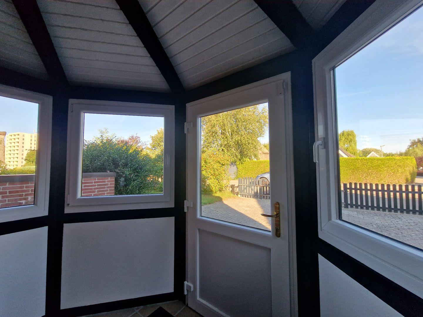Betreten Sie ihr Urlaubsdomizil über einen Windfang, welcher durch die Fensterelemente lichtdurchflutet ist und viel Platz als Stauraum oder als Sitzplatz in der Abendsonne bietet.