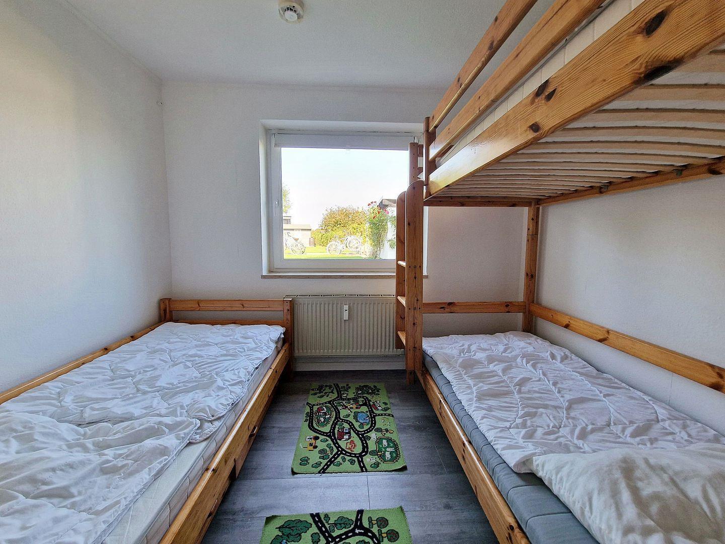 Vom Schlafzimmer aus gelangen Sie durch eine Schiebetür in das Kinderzimmer in dem ein Etagen- und ein einzelnes Bett Schlafplätze für 3 Personen bietet.